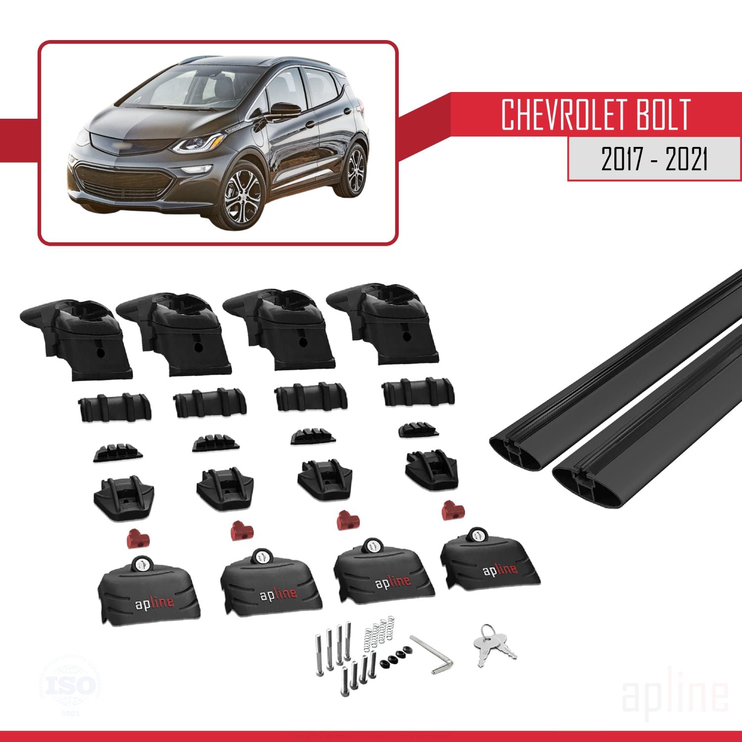 Kompatibel mit Chevrolet Bolt 2017-2021 ACE-2 Dachgepäckträger, Reling, Gepäckträger, schwarzes Aluminium, 2 Stangen
