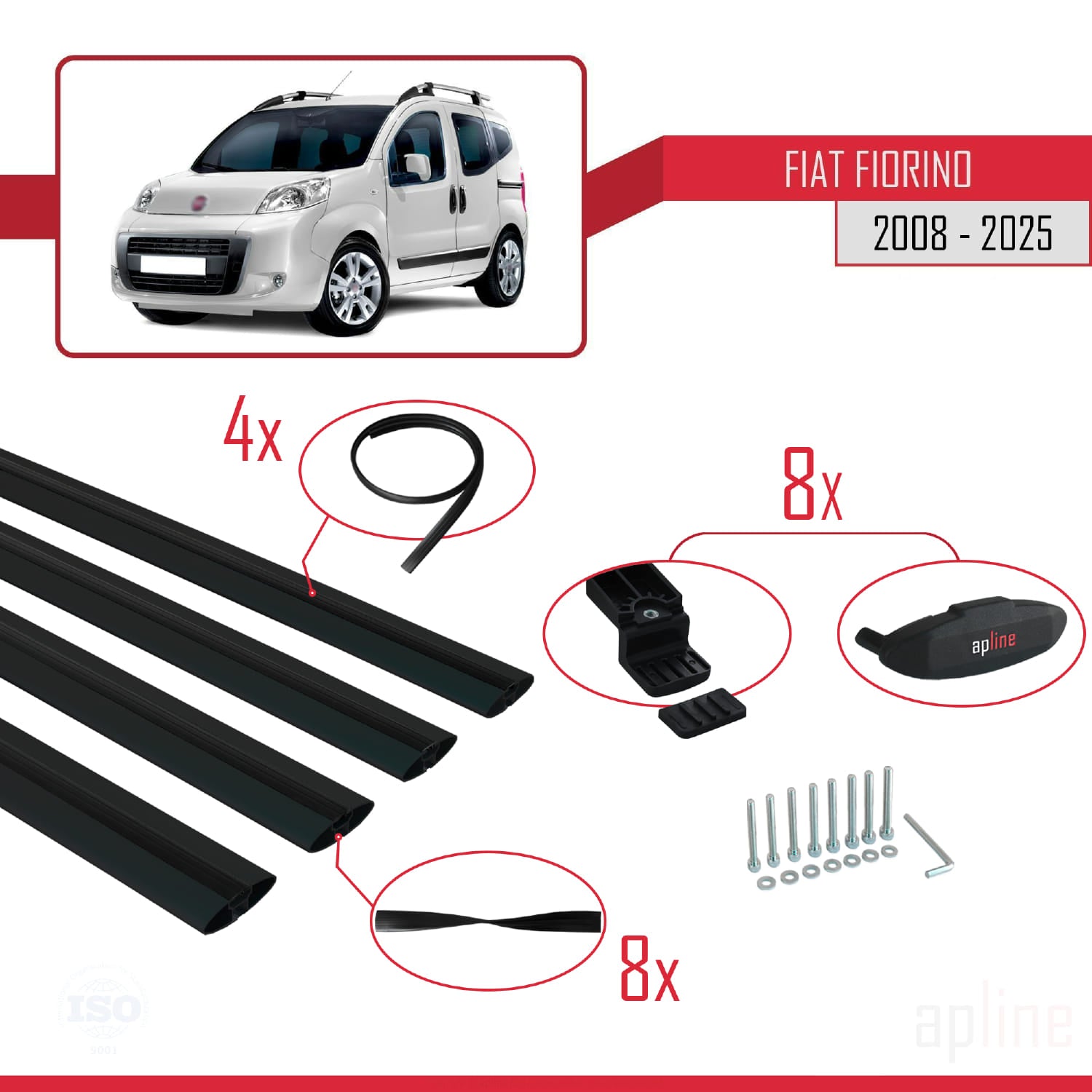 Kompatibel mit Fiat Fiorino 3 2008-2025 Basismodell Dachgepäckträger, schwarzes Aluminium, 4 Stangen