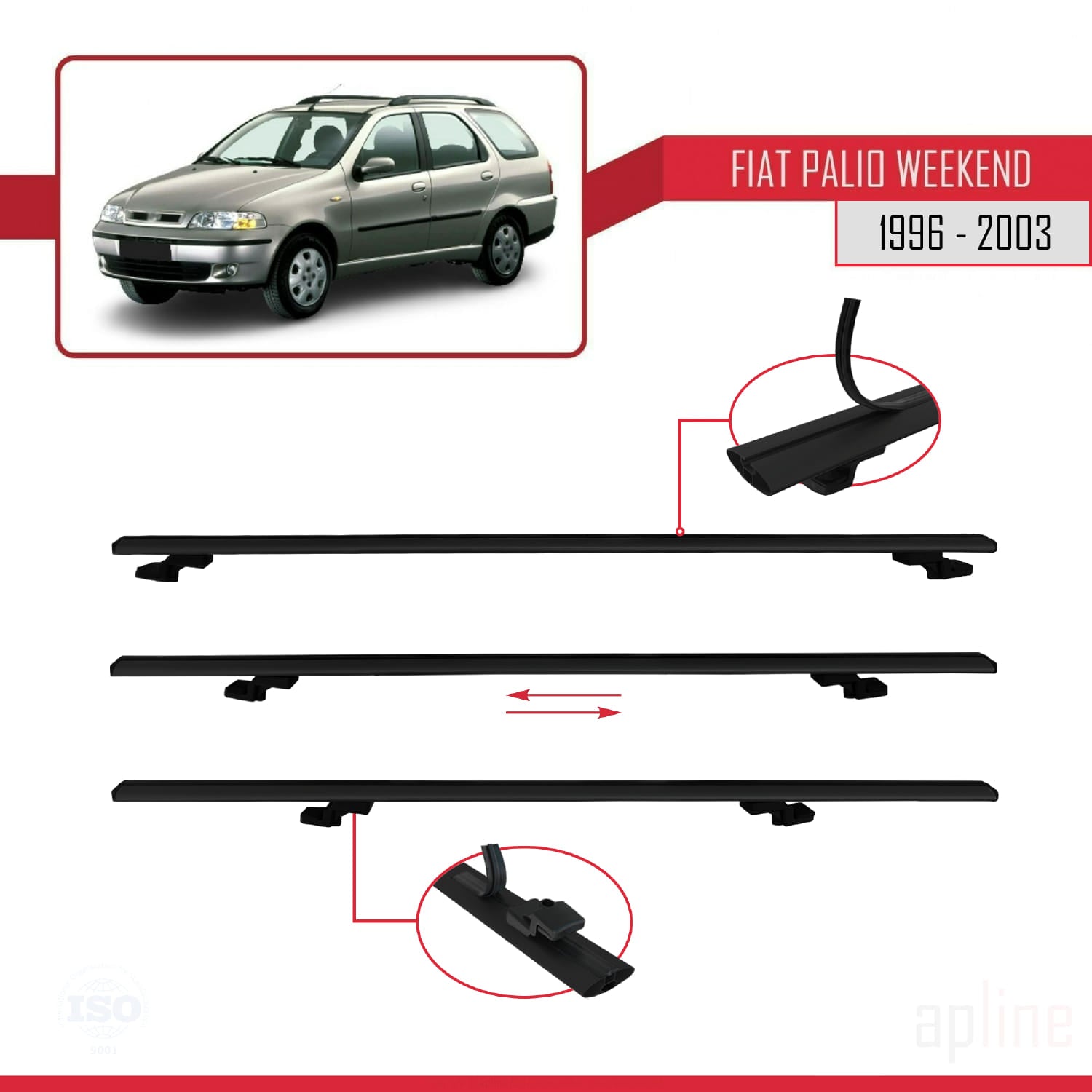 Kompatibel mit Fiat Palio (178) Weekend 1996-2003 Basismodell Dachgepäckträger, schwarzes Aluminium, 3-teilig