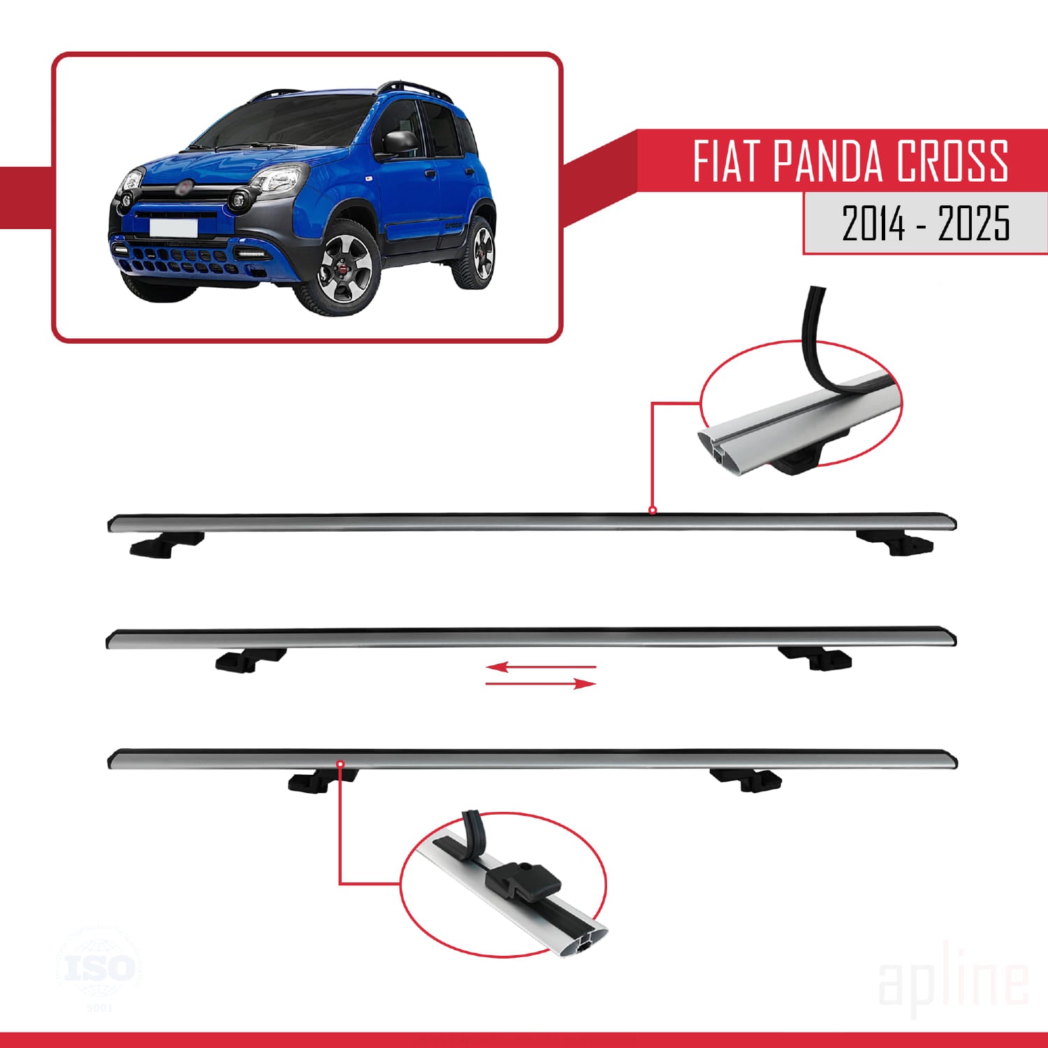 Kompatibel mit Fiat Panda Cross 2014-2025 Basismodell Dachgepäckträger, graues Aluminium, 2 Stangen