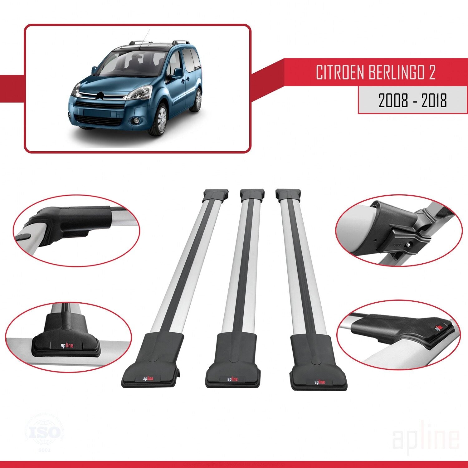 Compatible with Citroen Berlingo 2 (B9) 2008-2018 FLY Model Car Roof Rack Cross Bar Grey Aluminium 3 Bars