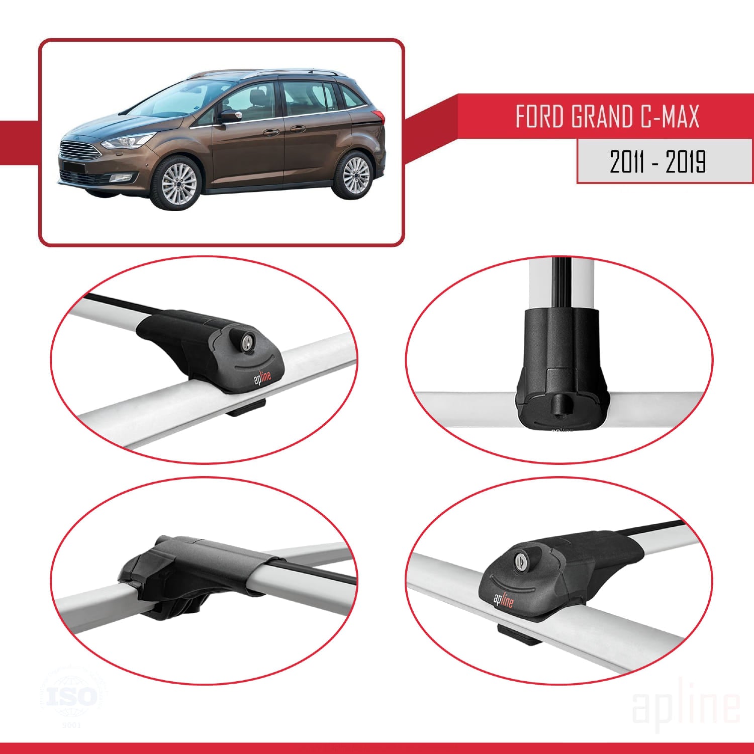 Compatibile con Ford Grand C-Max (C344) 2011-2019 ACE-1 Barre portatutto per auto Portapacchi in alluminio grigio 2 barre