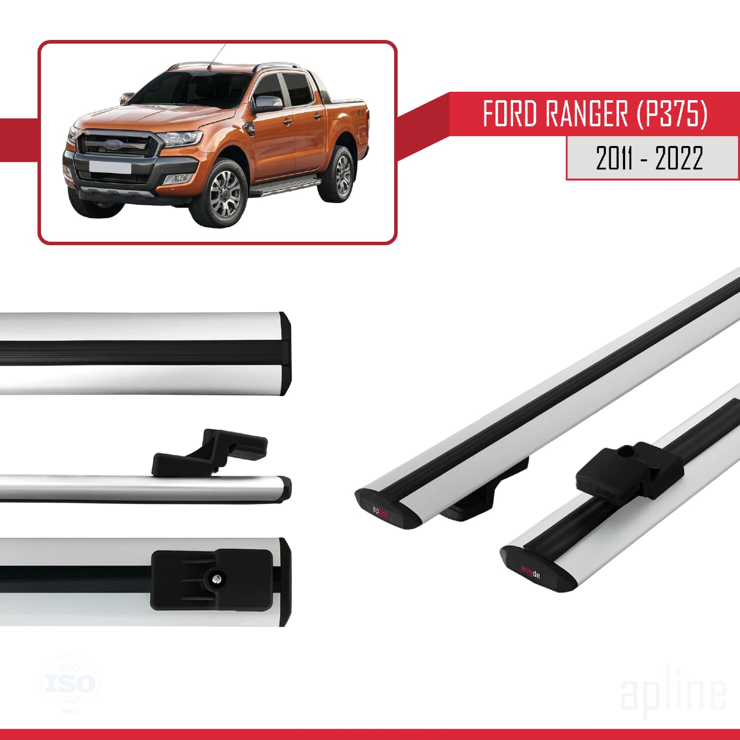 Compatibile con Ford Ranger (P375) 2011-2022 modello BASIC Barre portatutto per auto Portapacchi in alluminio grigio 2 barre