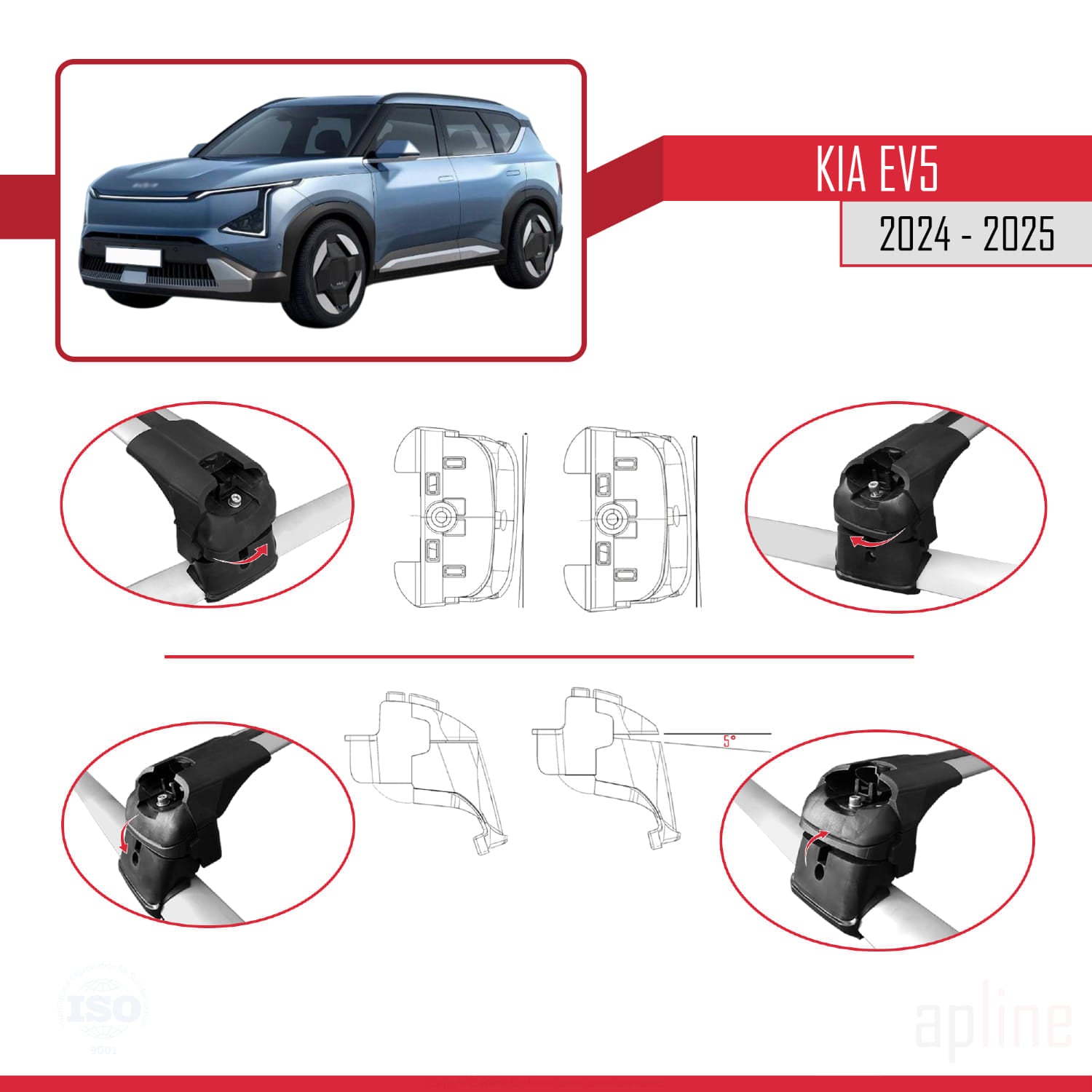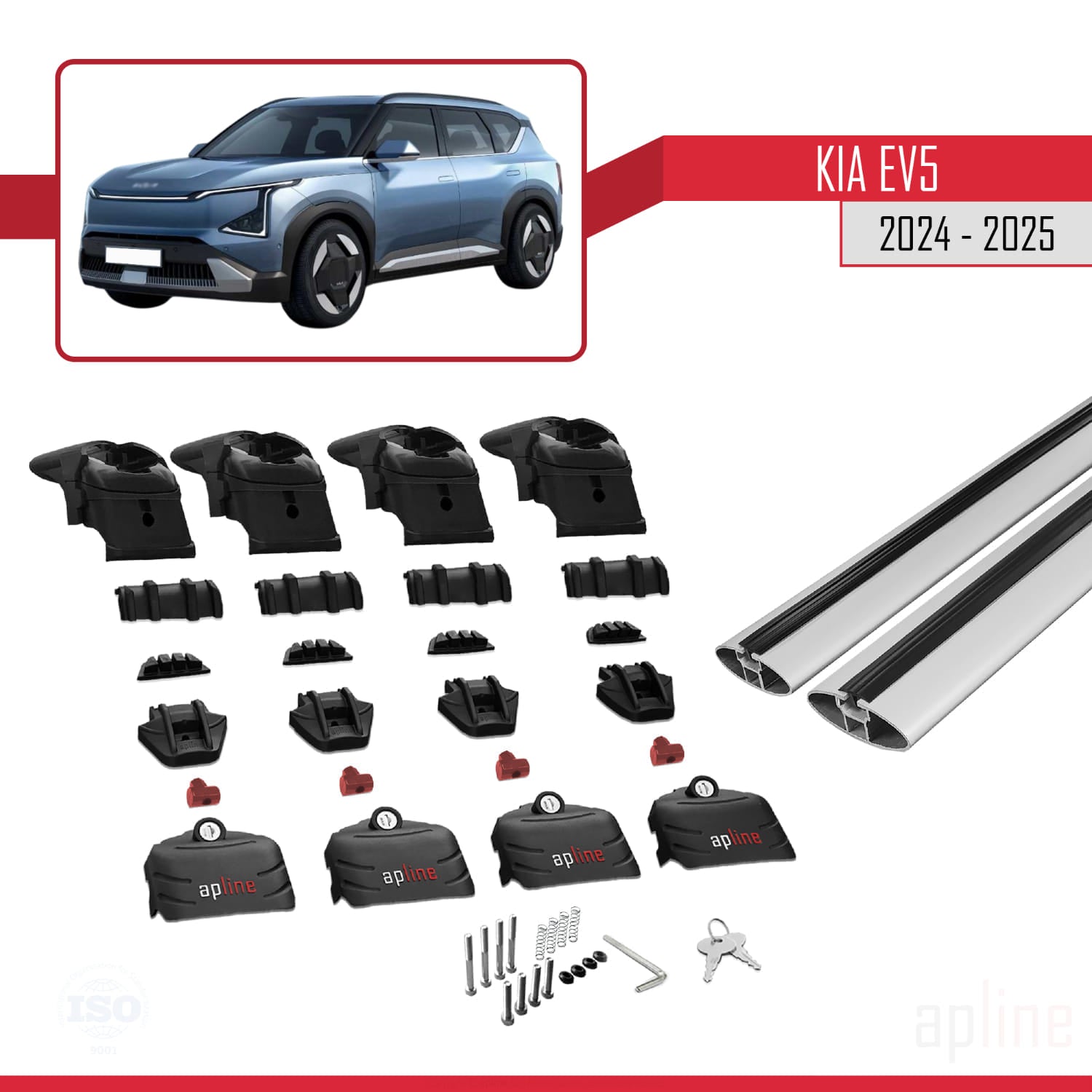 Compatible with Kia EV5 2024-2025 ACE-2 Car Roof Rack Cross Bar Grey Aluminium 2 Bars