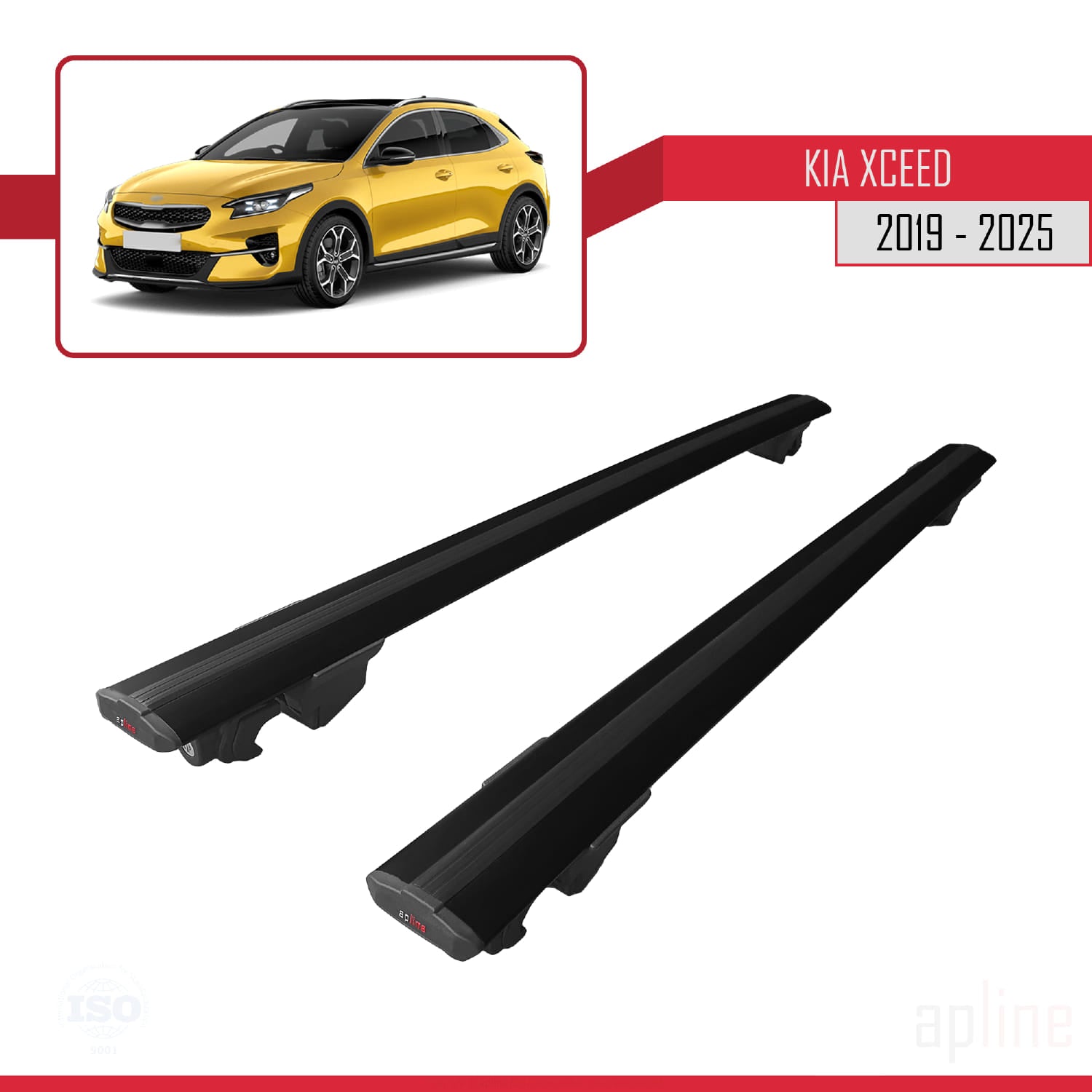 Compatible avec Kia XCeed (CD) 2019-2025 HOOK Model Barres de Toit Railing Porte-Bagages de Voiture Noir Aluminium 2 Barres
