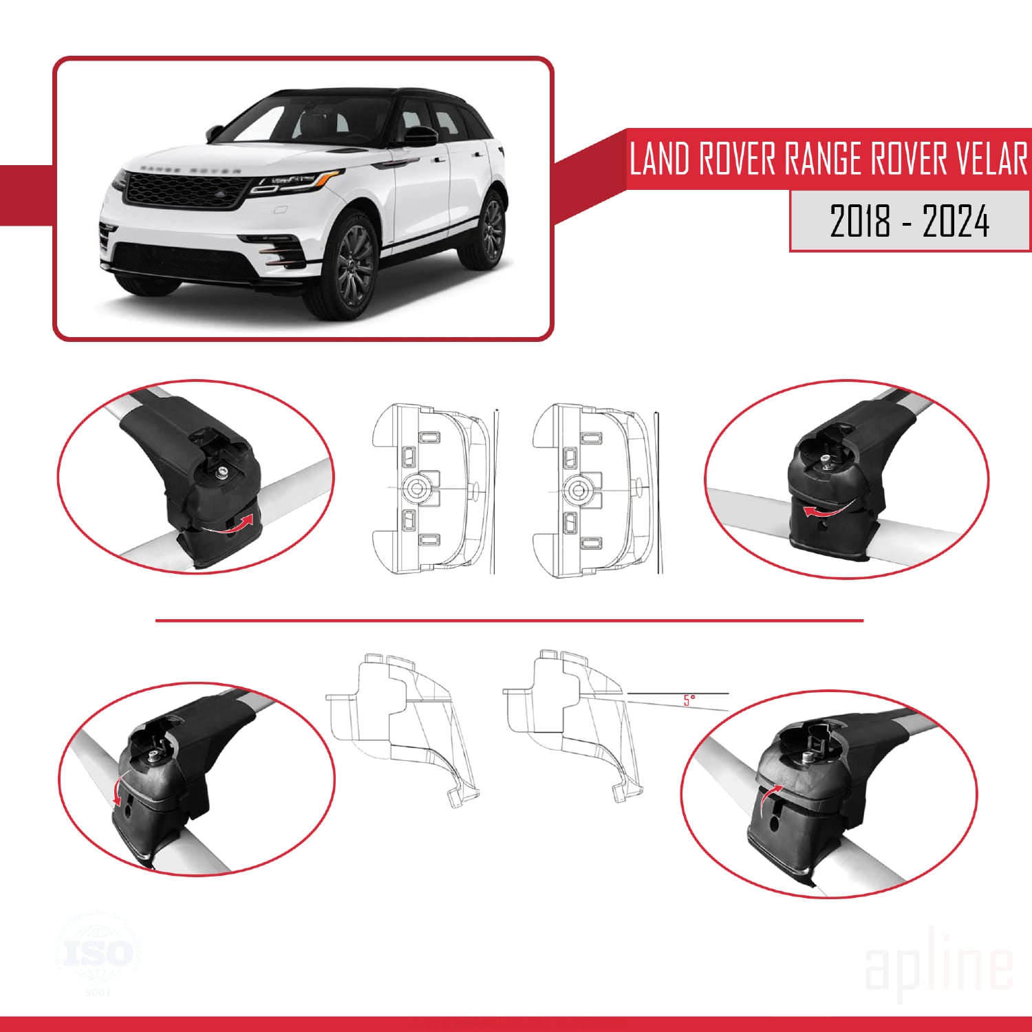 Compatible avec Land Rover Range Rover Velar 2018-2024 ACE-2 Barres de Toit Railing Porte-Bagages de Voiture Gris Aluminium 2 Barres