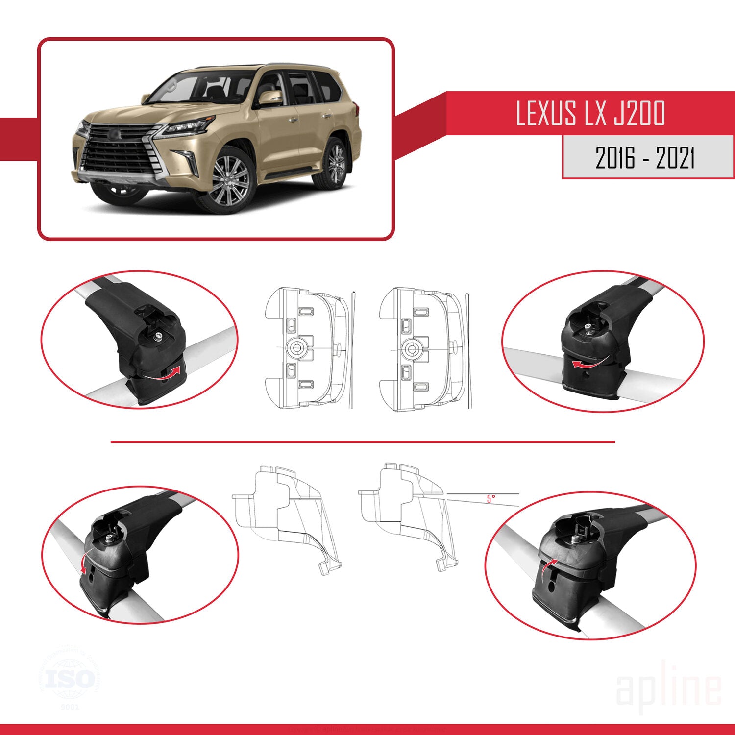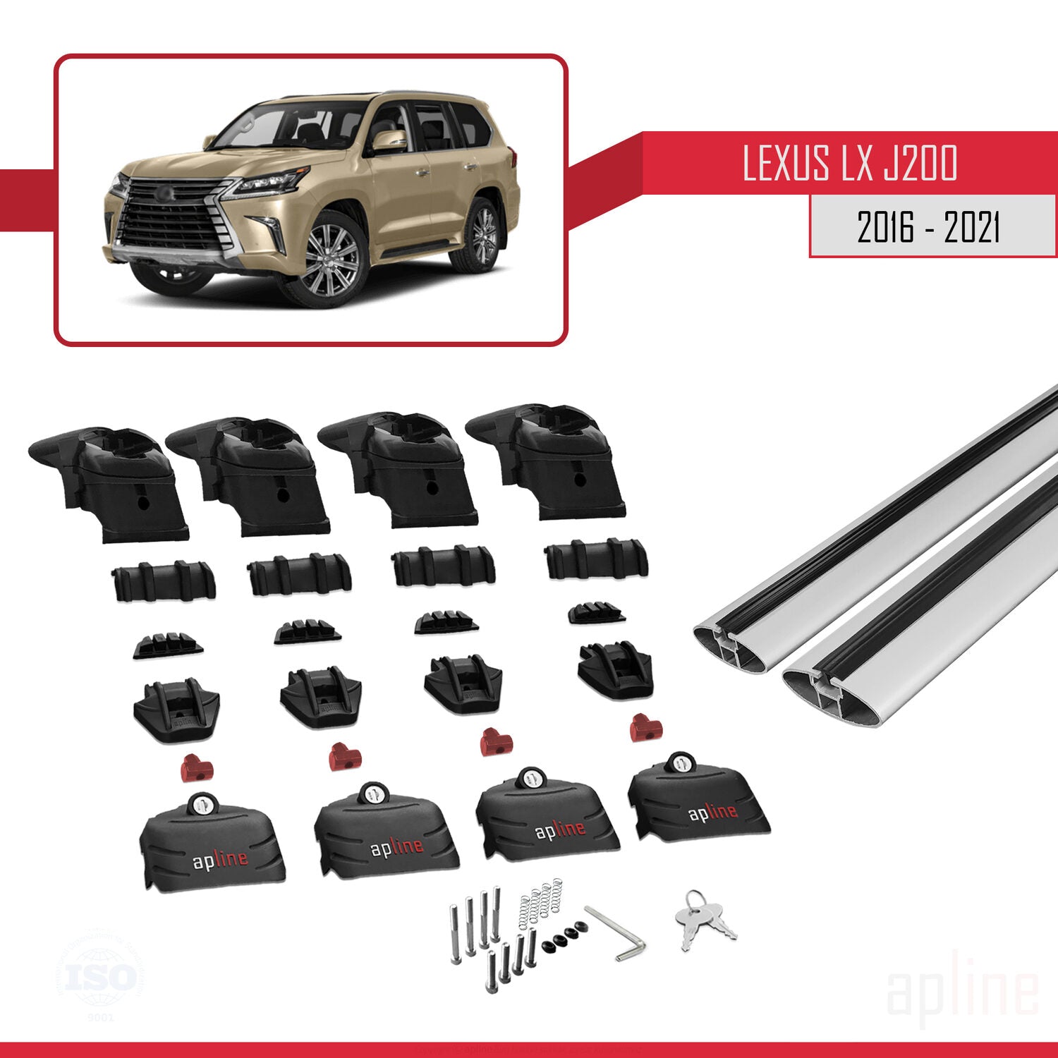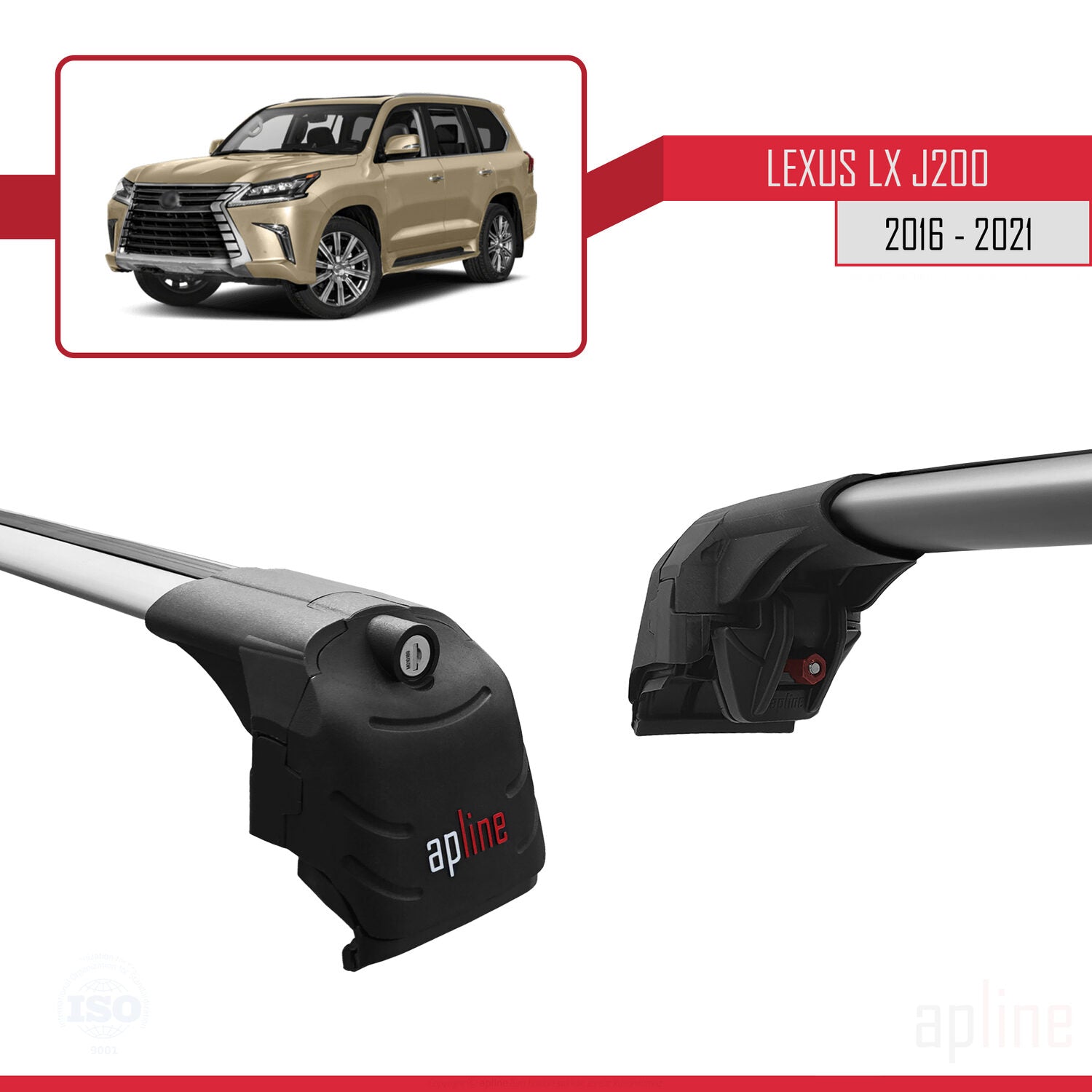 Compatible avec Lexus LX 3 (J200) 2016-2021 ACE-2 Barres de Toit Railing Porte-Bagages de Voiture Gris Aluminium 2 Barres