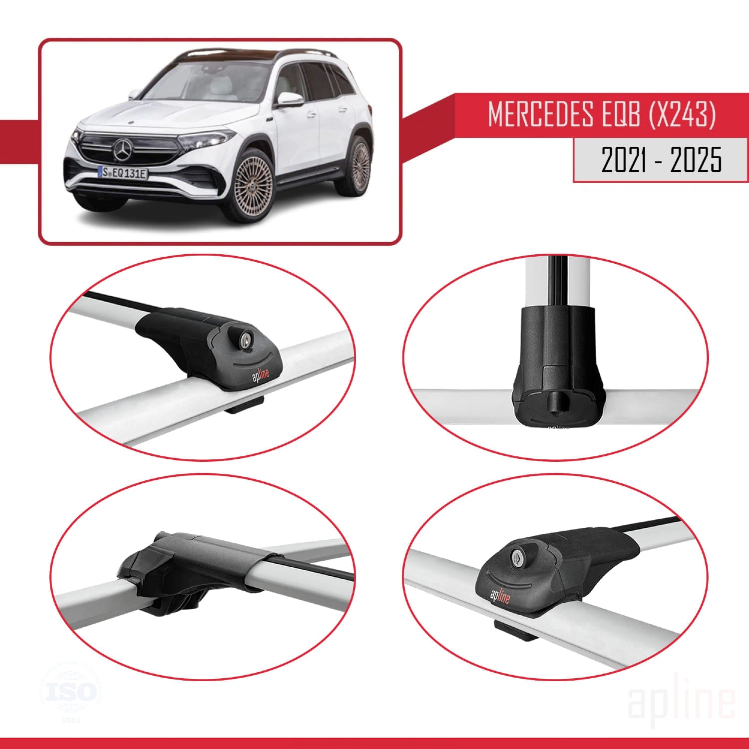Compatible avec Mercedes EQB (X243) 2021-2025 ACE-1 Barres de Toit Railing Porte-Bagages de Voiture Gris Aluminium 2 Barres