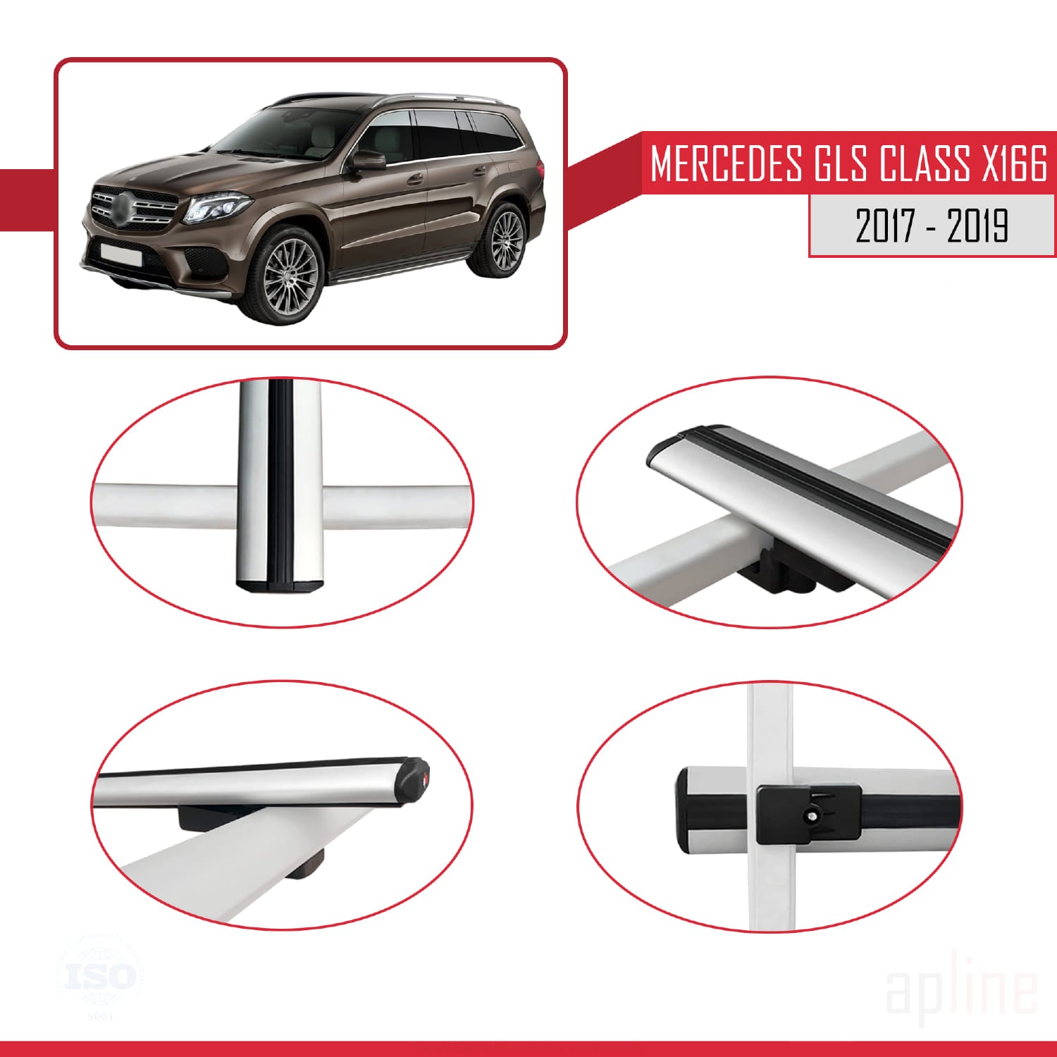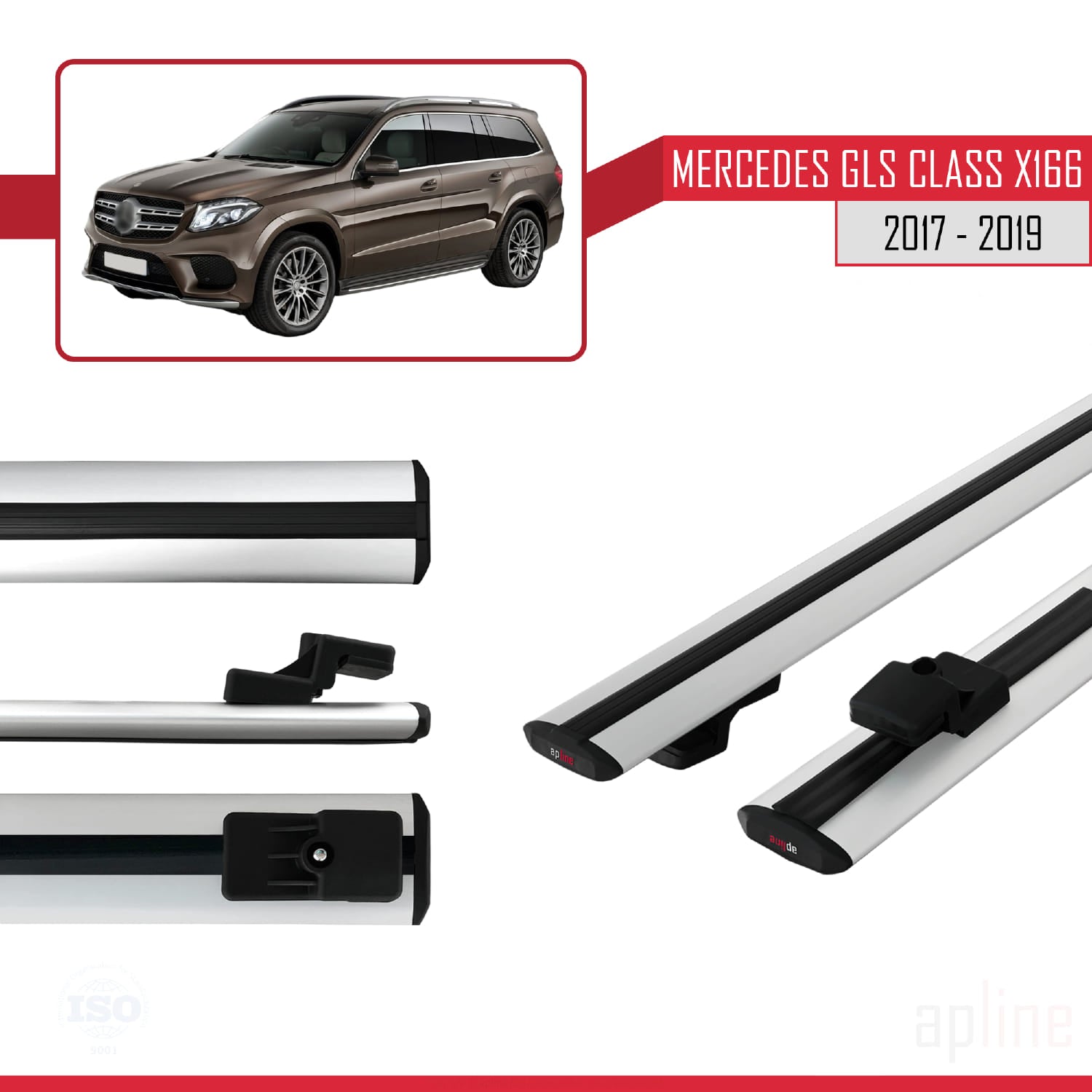 Compatible avec Mercedes GLS Class X166 2017-2019 BASIC Model Barres de Toit Railing Porte-Bagages de Voiture Gris Aluminium 2 Barres