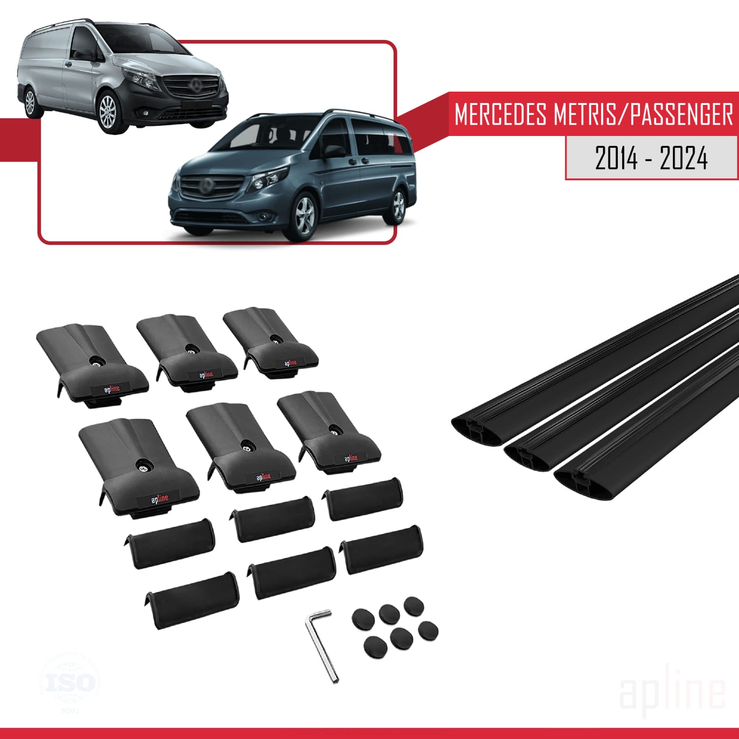 Compatible with Mercedes Metris (W447) 2014-2025 FLY Model Car Roof Rack Cross Bar Black Aluminium 3 Bars