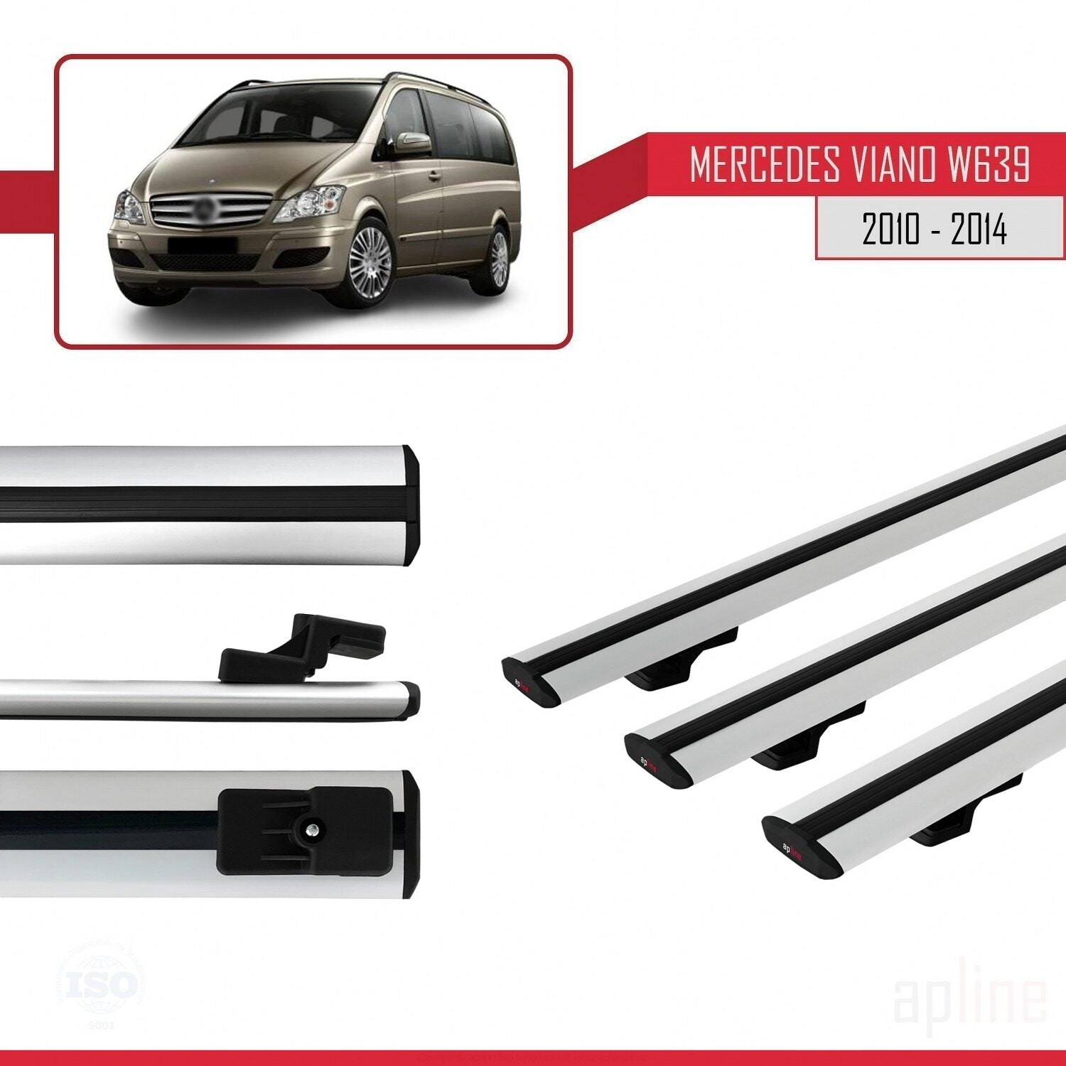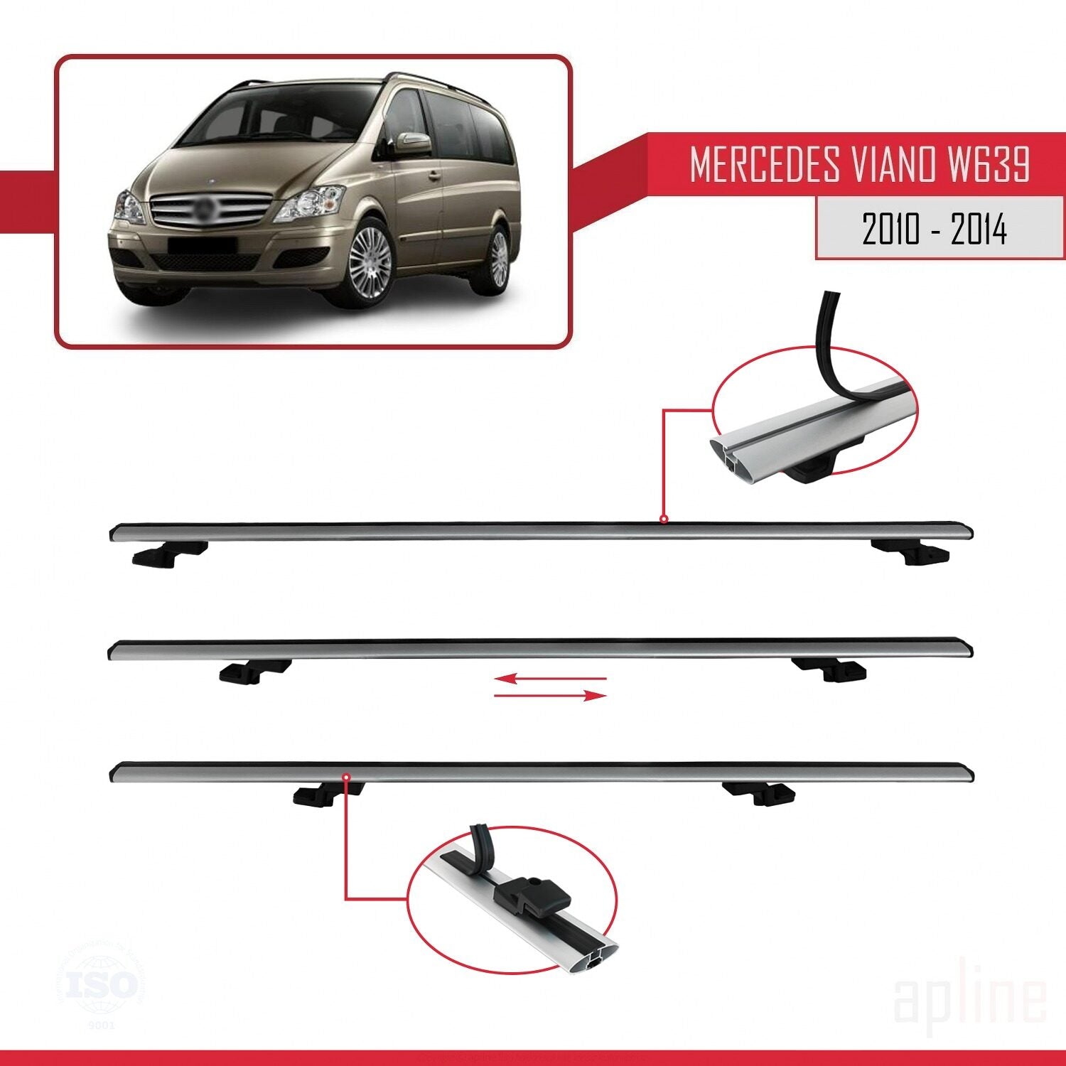 Compatible with Mercedes Viano 2 (W639) Post-Facelift 2010-2014 BASIC Model Car Roof Rack Cross Bar Grey Aluminium 3 Bars