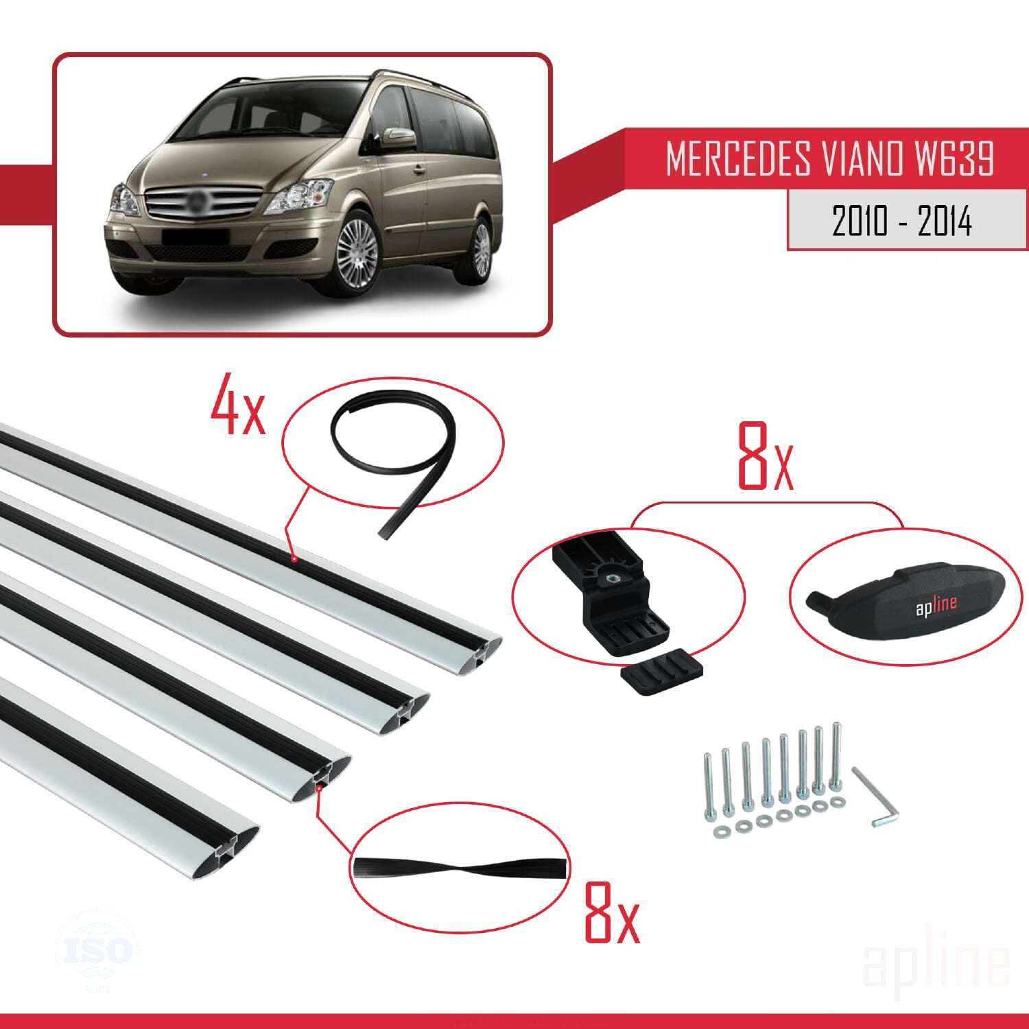 Compatible with Mercedes Viano 2 (W639) Post-Facelift 2010-2014 BASIC Model Car Roof Rack Cross Bar Grey Aluminium 4 Bars