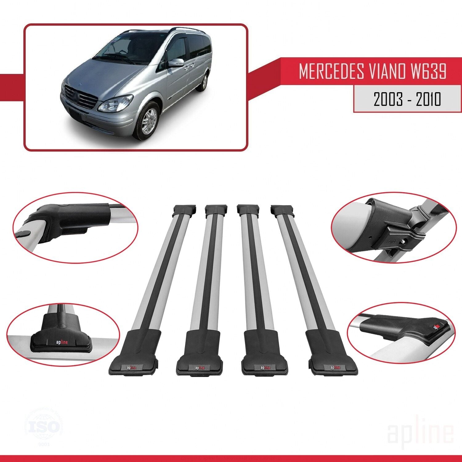 Compatible with Mercedes Viano 2 (W639) Pre-Facelift 2003-2010 FLY Model Car Roof Rack Cross Bar Grey Aluminium 4 Bars
