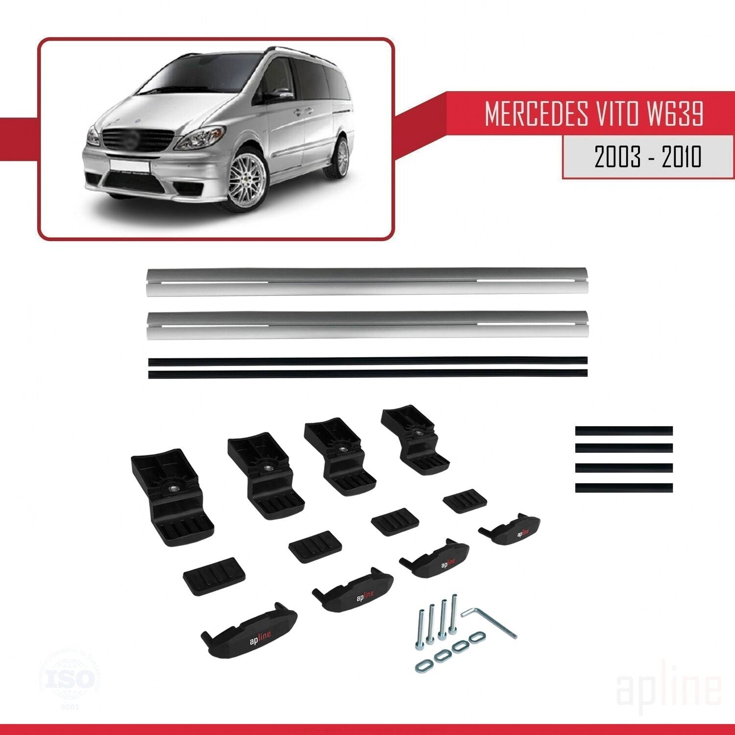 Compatible with Mercedes Vito 2 (W639) Pre-Facelift 2003-2010 BASIC Model Car Roof Rack Cross Bar Grey Aluminium 2 Bars