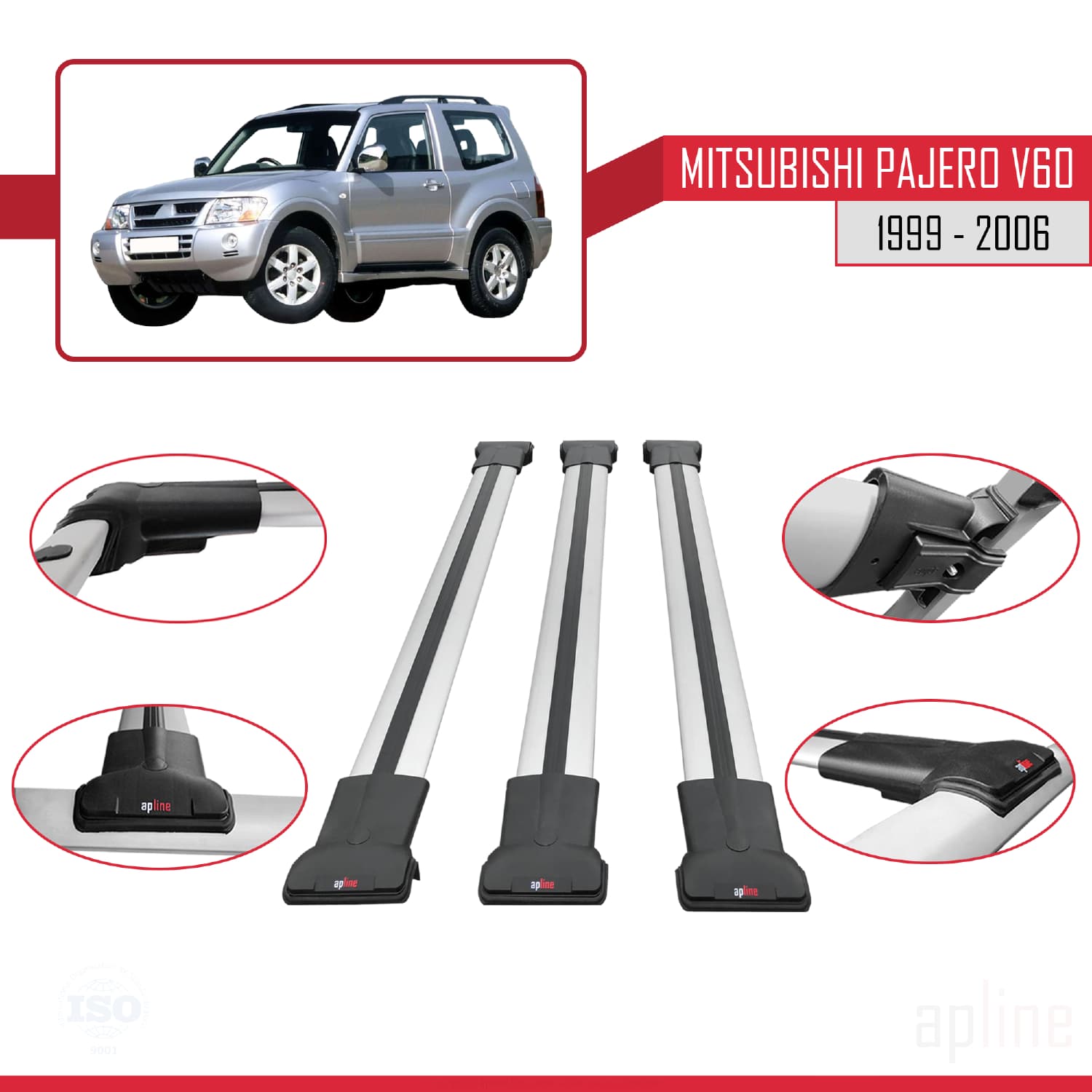 Compatible with Mitsubishi Pajero (V60) 3 Kapı 1999-2006 FLY Model Car Roof Rack Cross Bar Grey Aluminium 3 Bars