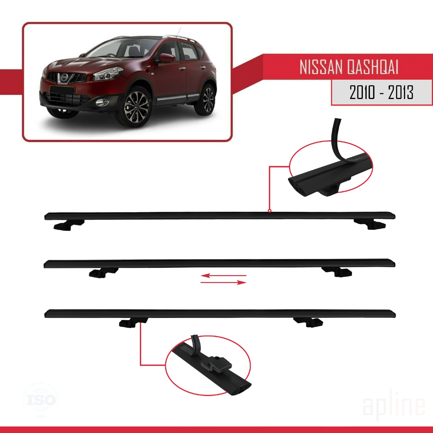 Compatible avec Nissan Qashqai (J10) Post-Facelift 2010-2013 BASIC Model Barres de Toit Railing Porte-Bagages de Voiture Noir Aluminium 3 Barres