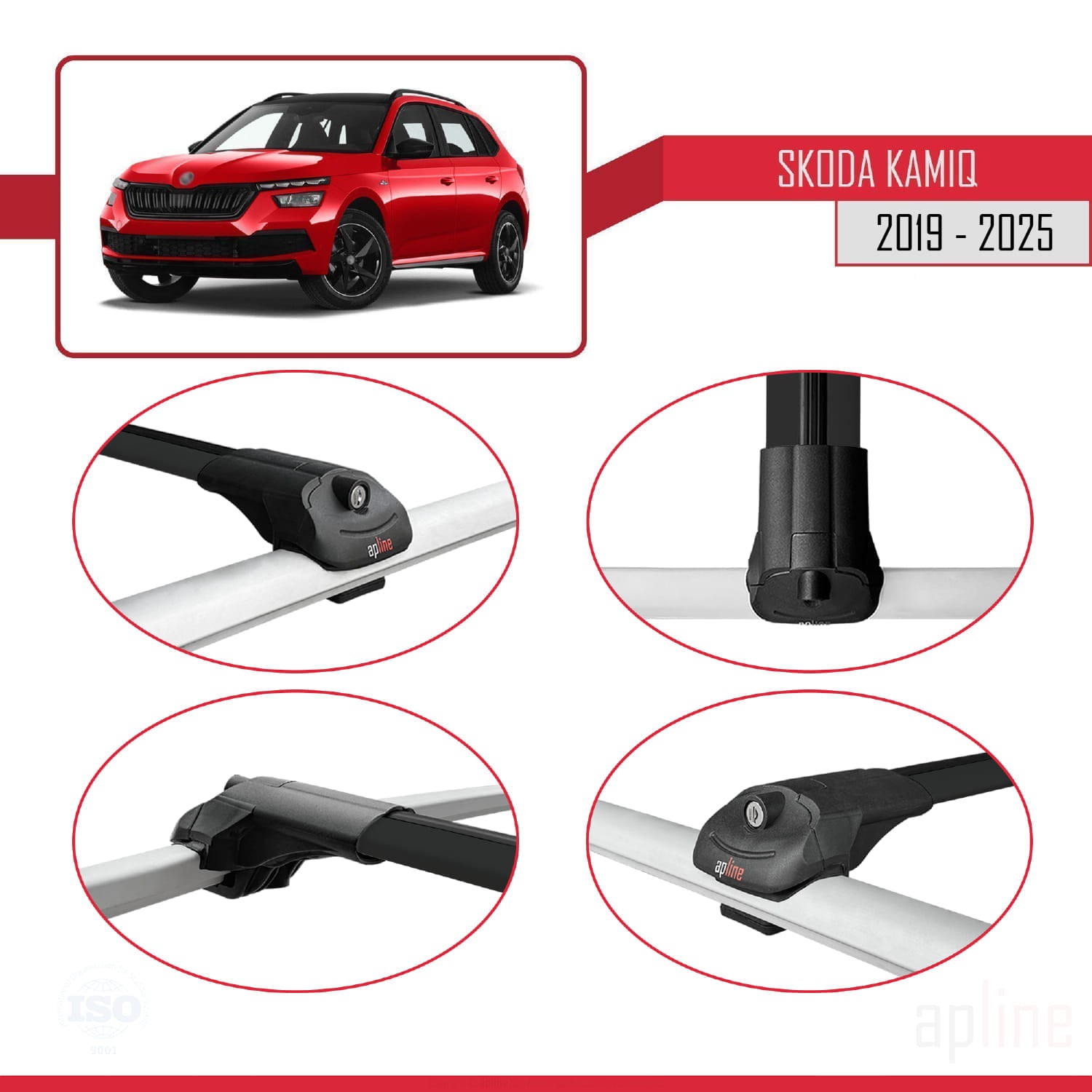 Compatible with Skoda Kamiq 2019-2025 ACE-1 Car Roof Rack Cross Bar Black Aluminium 3 Bars