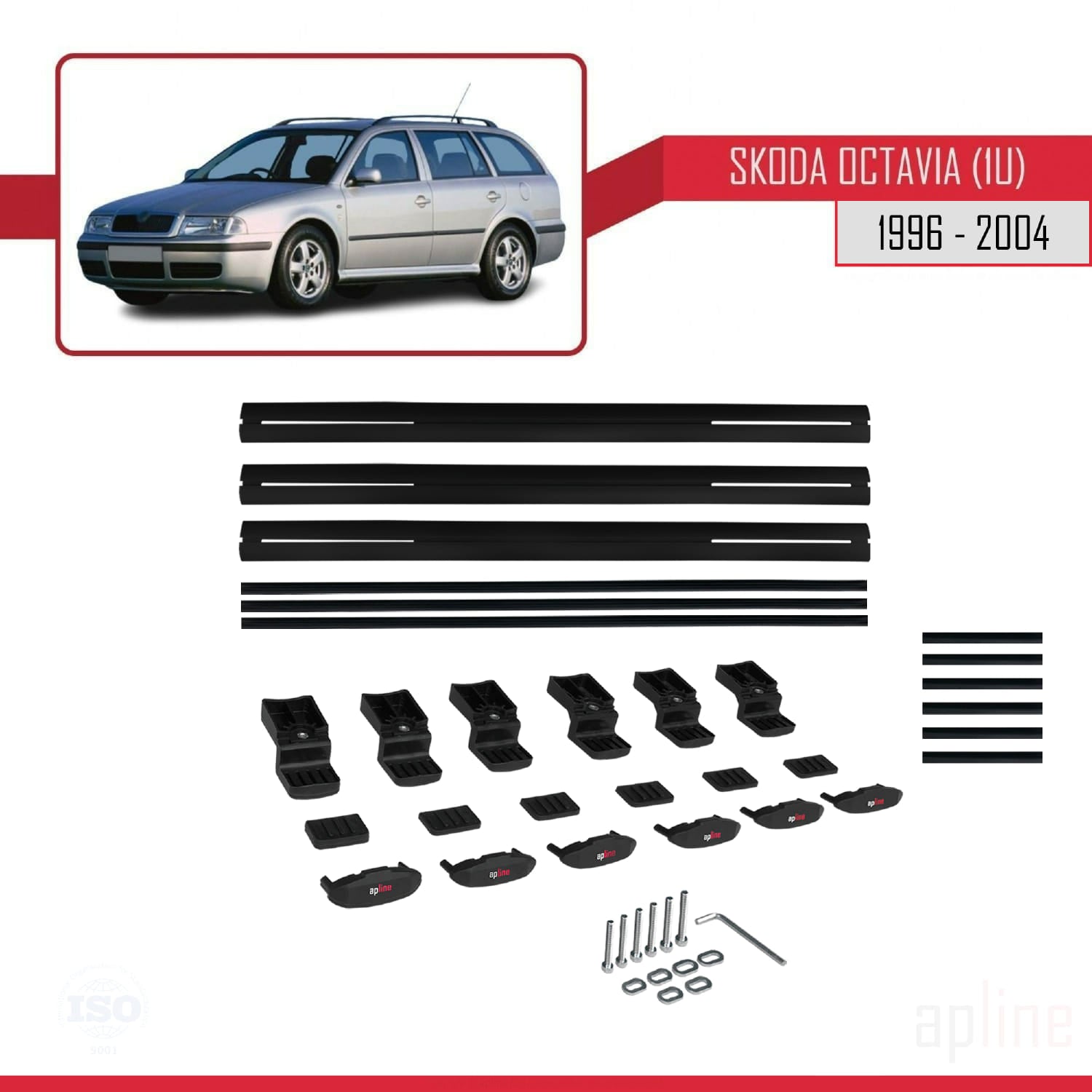 Compatible with Skoda Octavia (1U) 1996-2004 BASIC Model Car Roof Rack Cross Bar Black Aluminium 3 Bars