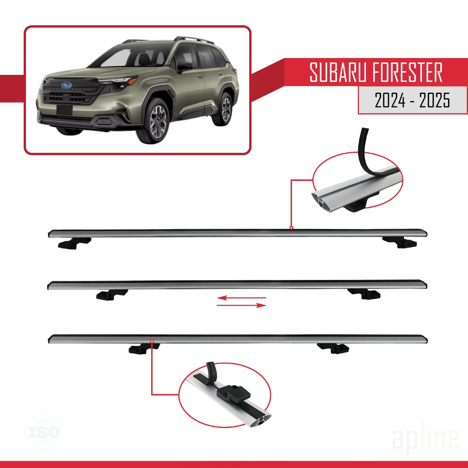 Compatible with Subaru Forester (Raised Roof) 2024-2025 BASIC Model Car Roof Rack Cross Bar Grey Aluminium 3 Bars