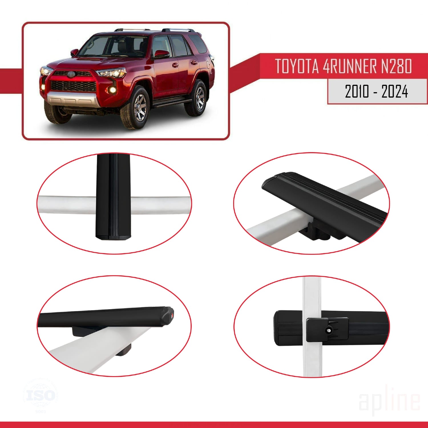 Compatible avec Toyota 4Runner (N280) 2010-2024 BASIC Model Barres de Toit Railing Porte-Bagages de Voiture Noir Aluminium 2 Barres