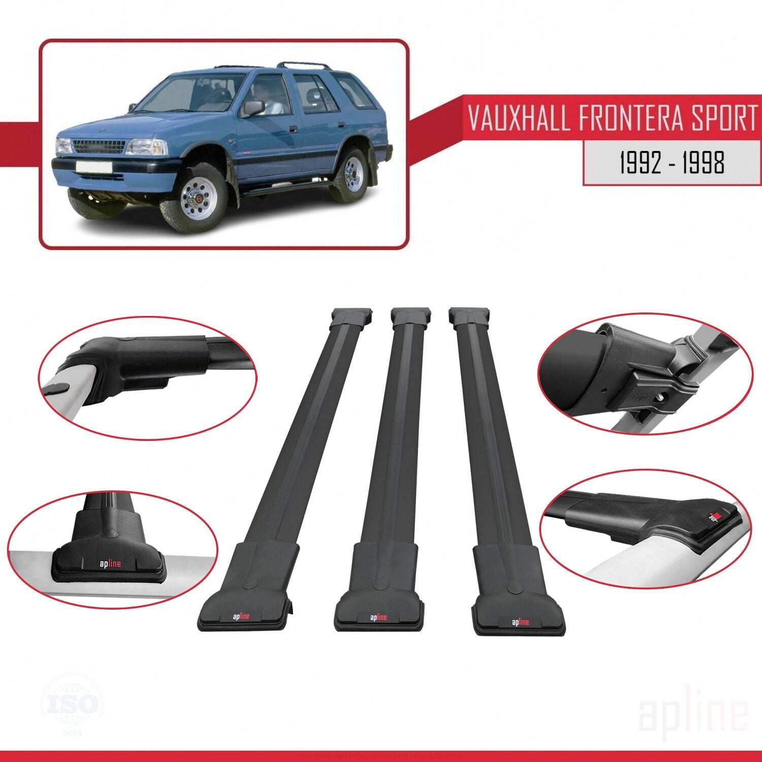 Compatible avec Vauxhall Frontera Sport 1992-1998 FLY Model Barres de Toit Railing Porte-Bagages de Voiture Noir Aluminium 3 Barres