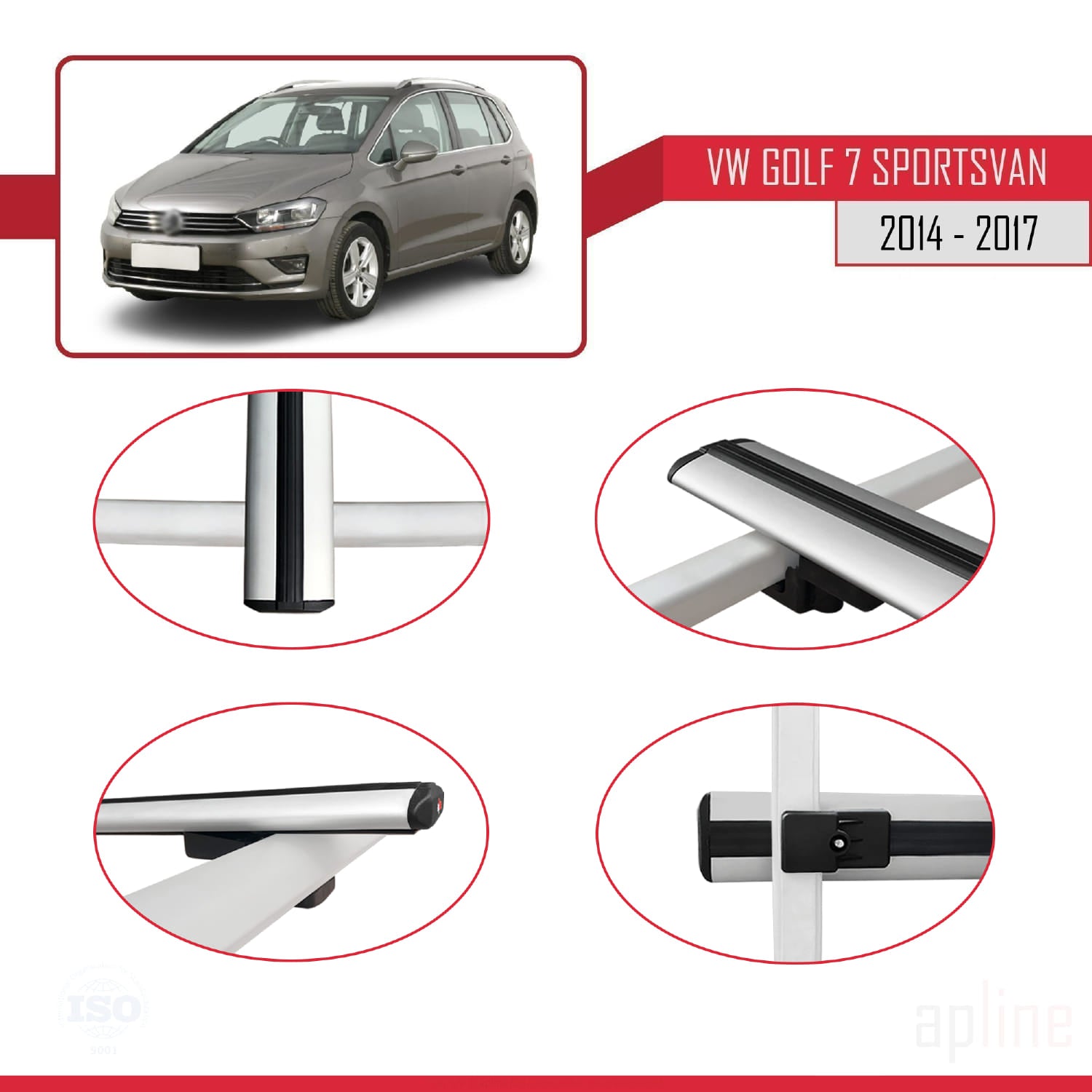 Compatible avec Volkswagen Golf Sportvan 2014-2017 BASIC Model Barres de Toit Railing Porte-Bagages de Voiture Gris Aluminium 2 Barres