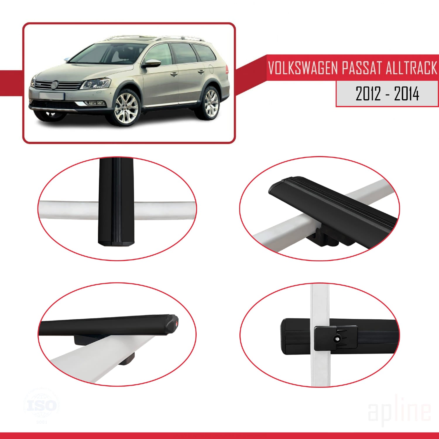 Compatible avec Volkswagen Passat B7 (3C) Alltrack 2012-2014 BASIC Model Barres de Toit Railing Porte-Bagages de Voiture Noir Aluminium 2 Barres