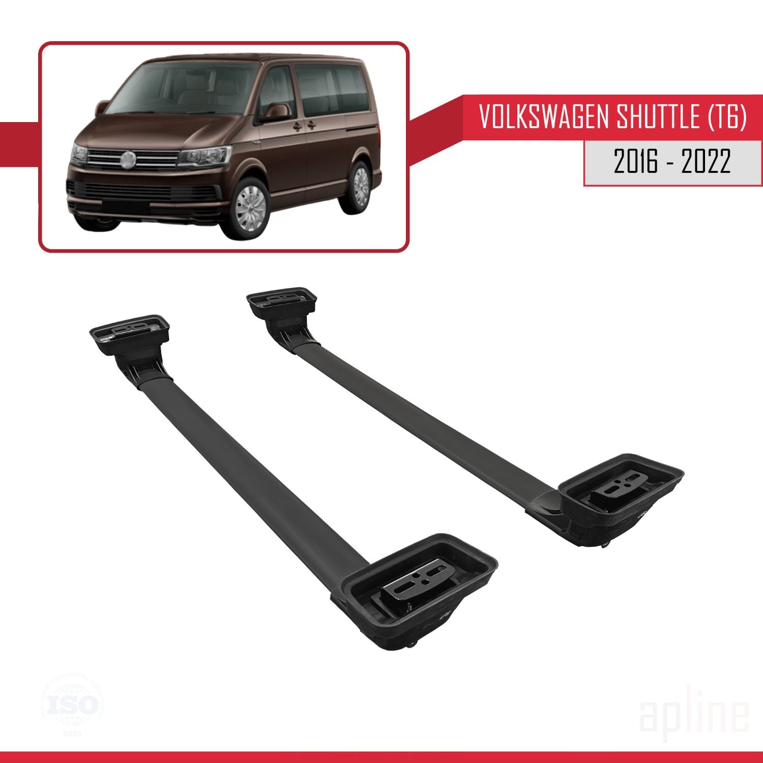 Compatible avec Volkswagen Shuttle (T6) 2016-2022 ACE-3 Barres de Toit Railing Porte-Bagages de Voiture Noir Aluminium 2 Barres