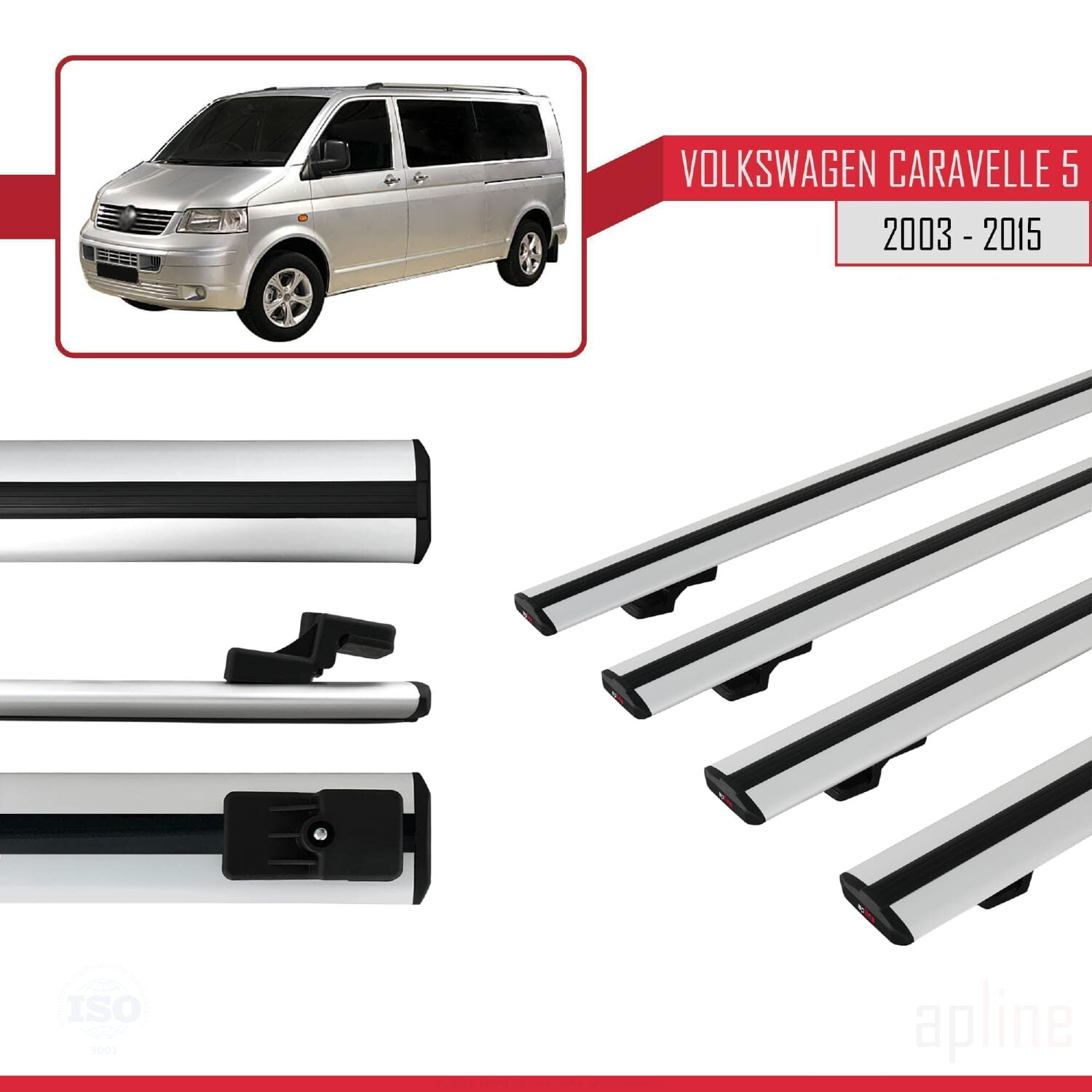 Compatible avec Volkswagen T5 Caravelle 2003-2015 BASIC Model Barres de Toit Railing Porte-Bagages de Voiture Gris Aluminium 4 Barres