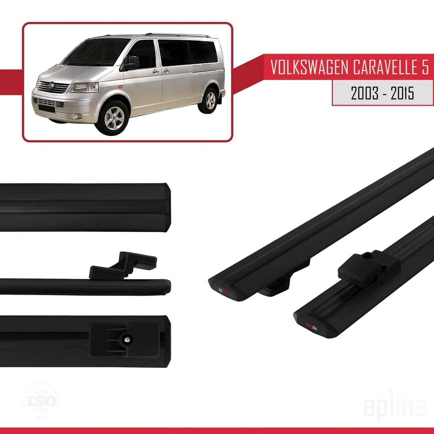 Compatible avec Volkswagen T5 Caravelle 2003-2015 BASIC Model Barres de Toit Railing Porte-Bagages de Voiture Noir Aluminium 2 Barres