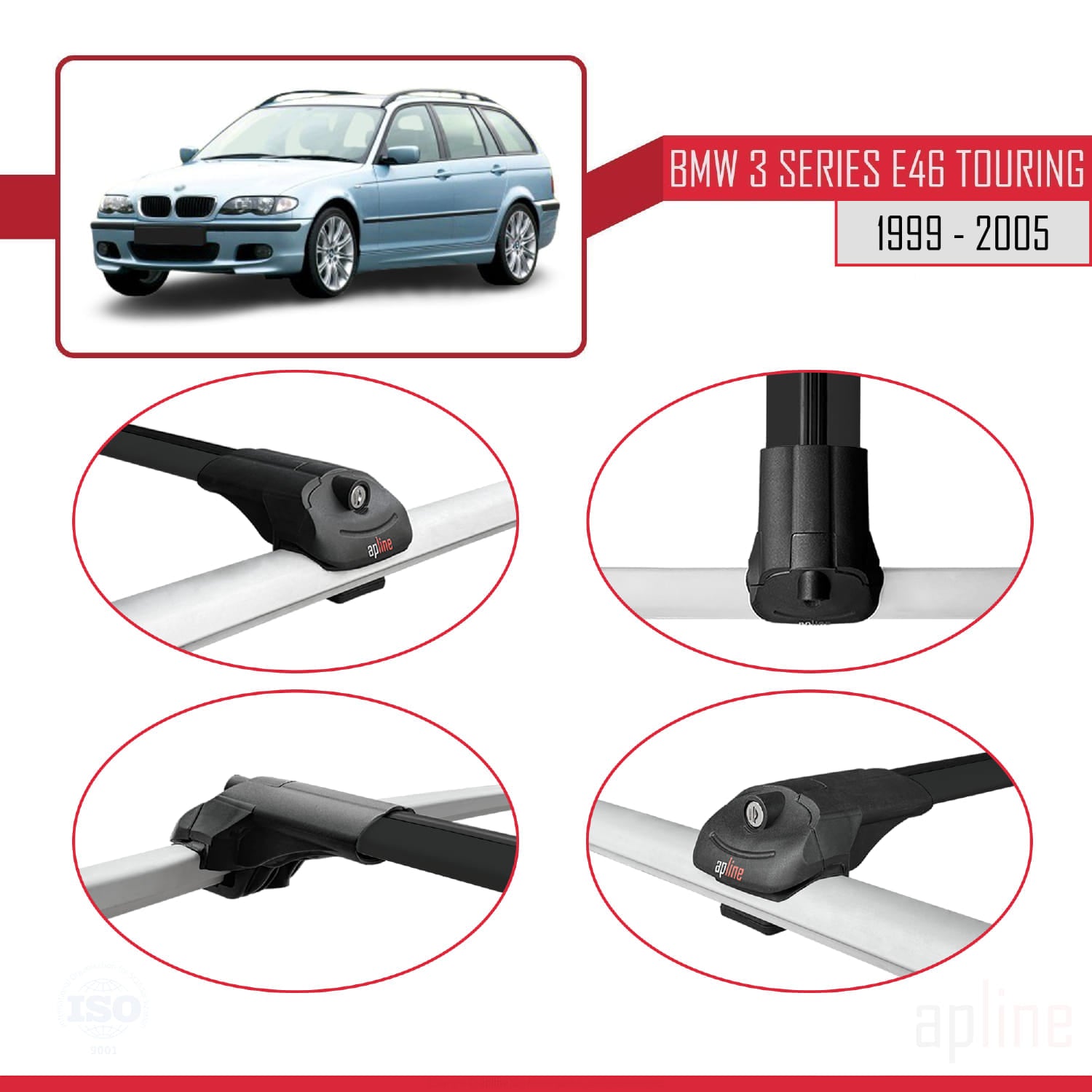 Compatibile con BMW Serie 3 (E46) Touring 1999-2005 Barre portatutto ACE-1 Portapacchi per auto in alluminio nero 3 barre