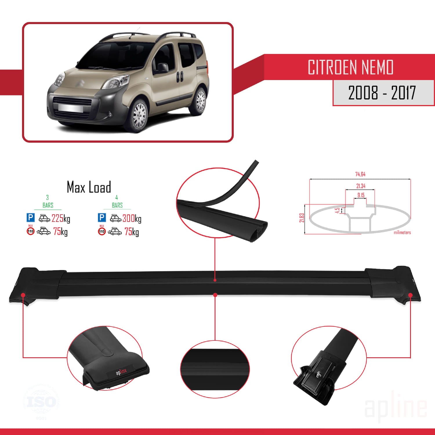 Compatibile con Citroen Nemo 3 (225) 2008-2017 modello FLY Barre portatutto per auto Portapacchi in alluminio nero 3 barre