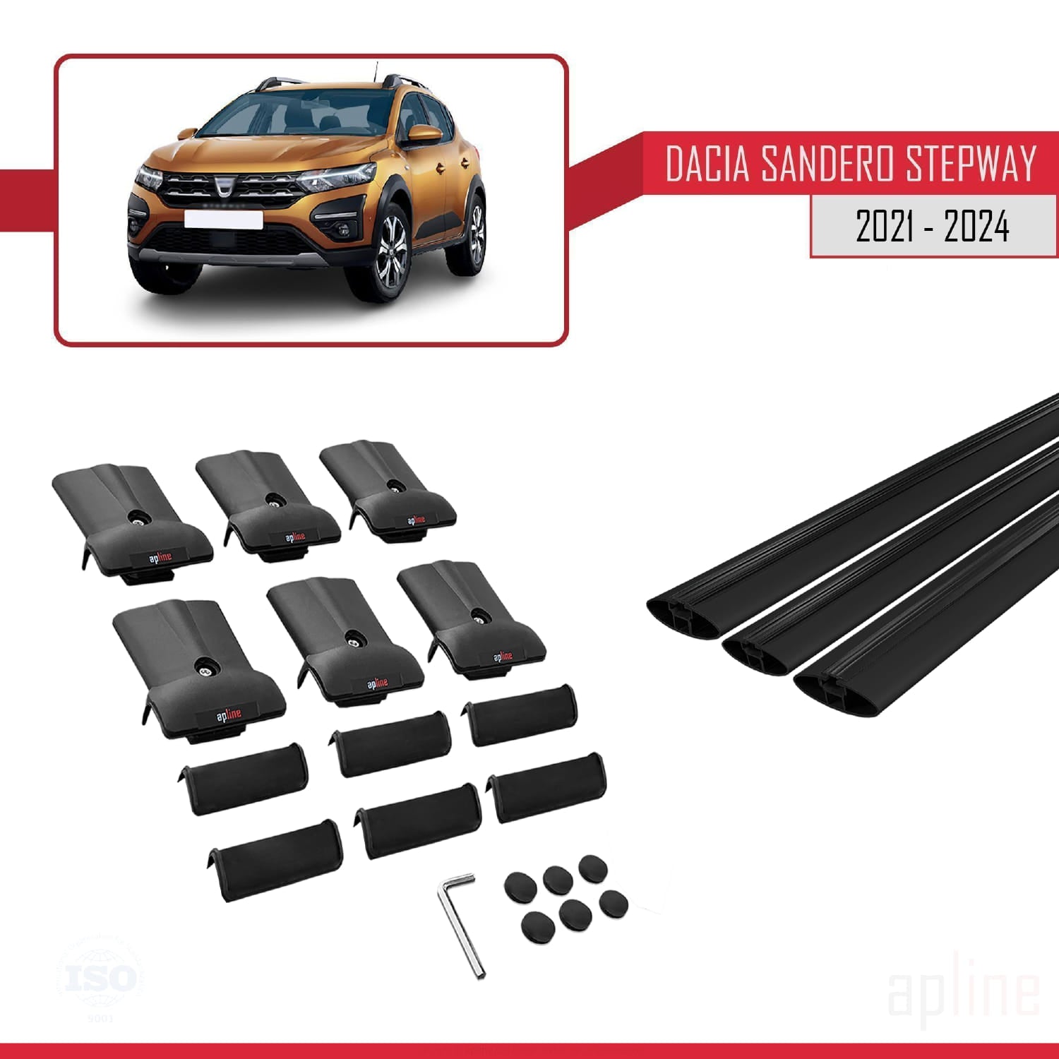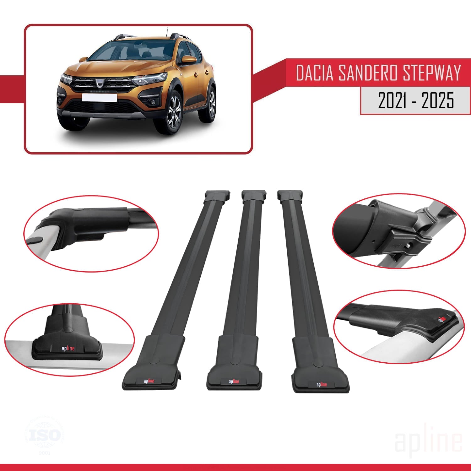 Compatibile con Dacia Sandero Stepway 3 2021-2025 modello FLY Barre portatutto per auto Portapacchi in alluminio nero 3 barre
