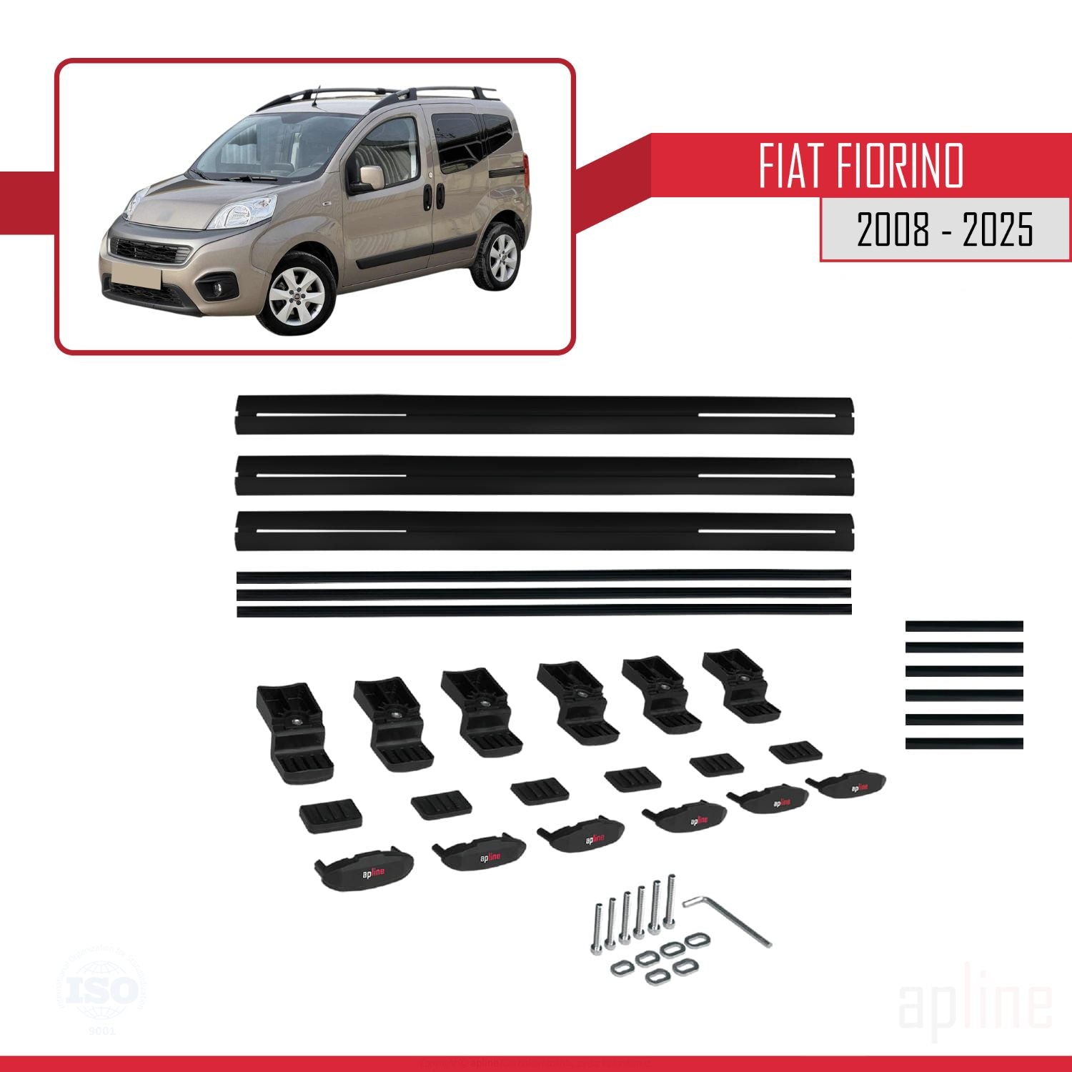 Compatibile con Fiat Fiorino (modello tubolare) 2008-2025 modello BASIC Barre portatutto per auto Portapacchi in alluminio nero 3 barre