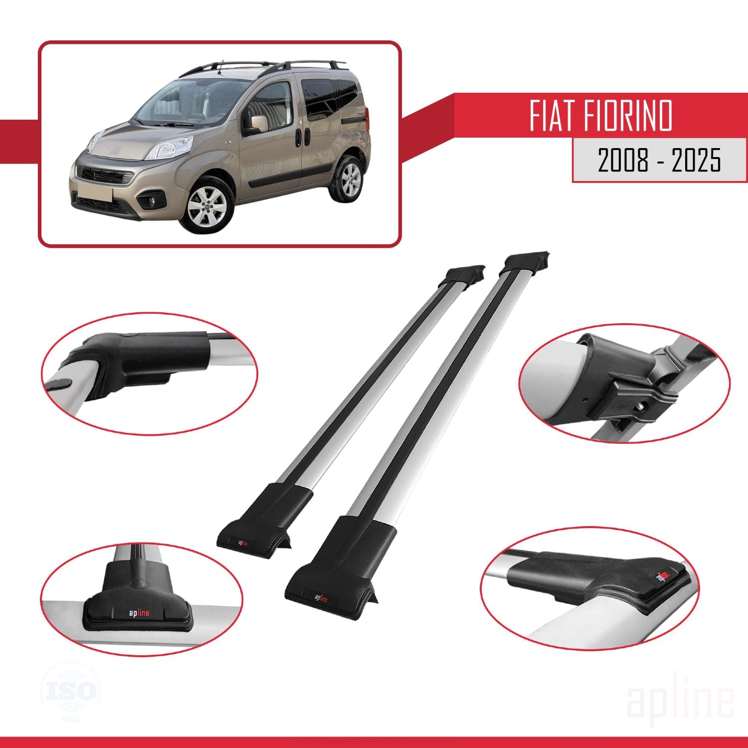 Compatibile con Fiat Fiorino (Modello Tubolare) Modello FLY Barre Portatutto Railing Portapacchi Auto Alluminio Grigio 2 Barre