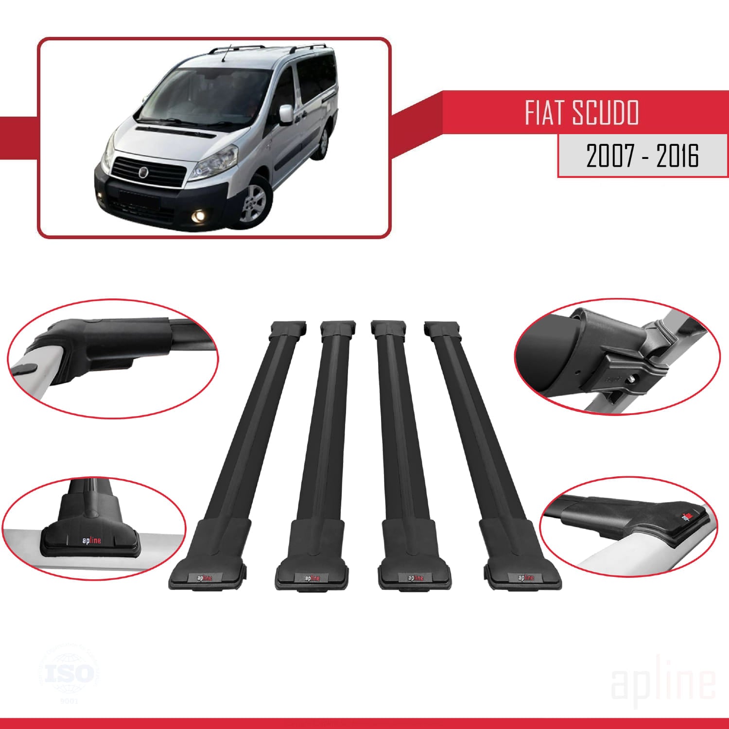 Compatibile con Fiat Scudo 2 2007-2016 modello FLY Barre portatutto Railing Portapacchi Auto Alluminio Nero 4 Barre