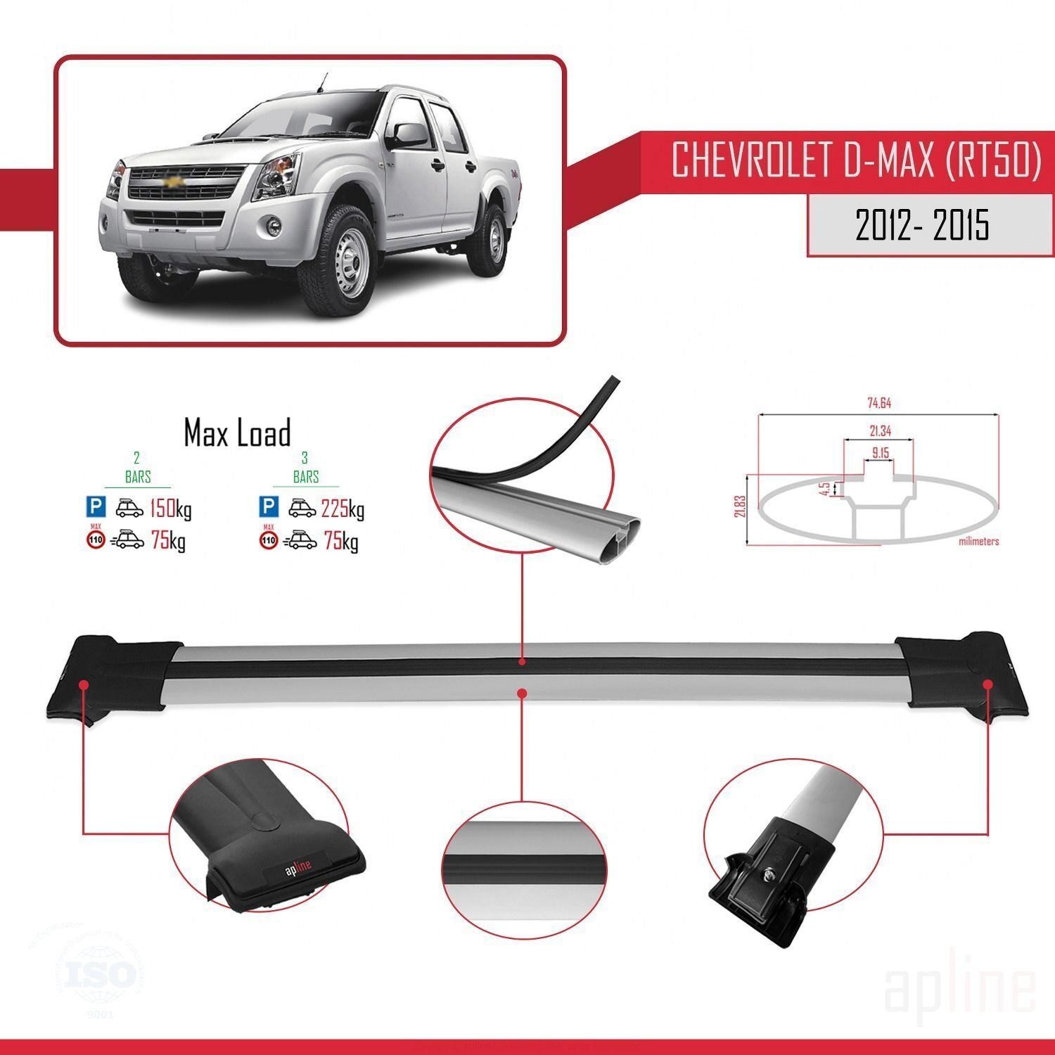 Compatibile con Chevrolet D-Max (RT50) 2012-2015 modello FLY Barre portatutto per auto Portapacchi in alluminio grigio 2 barre