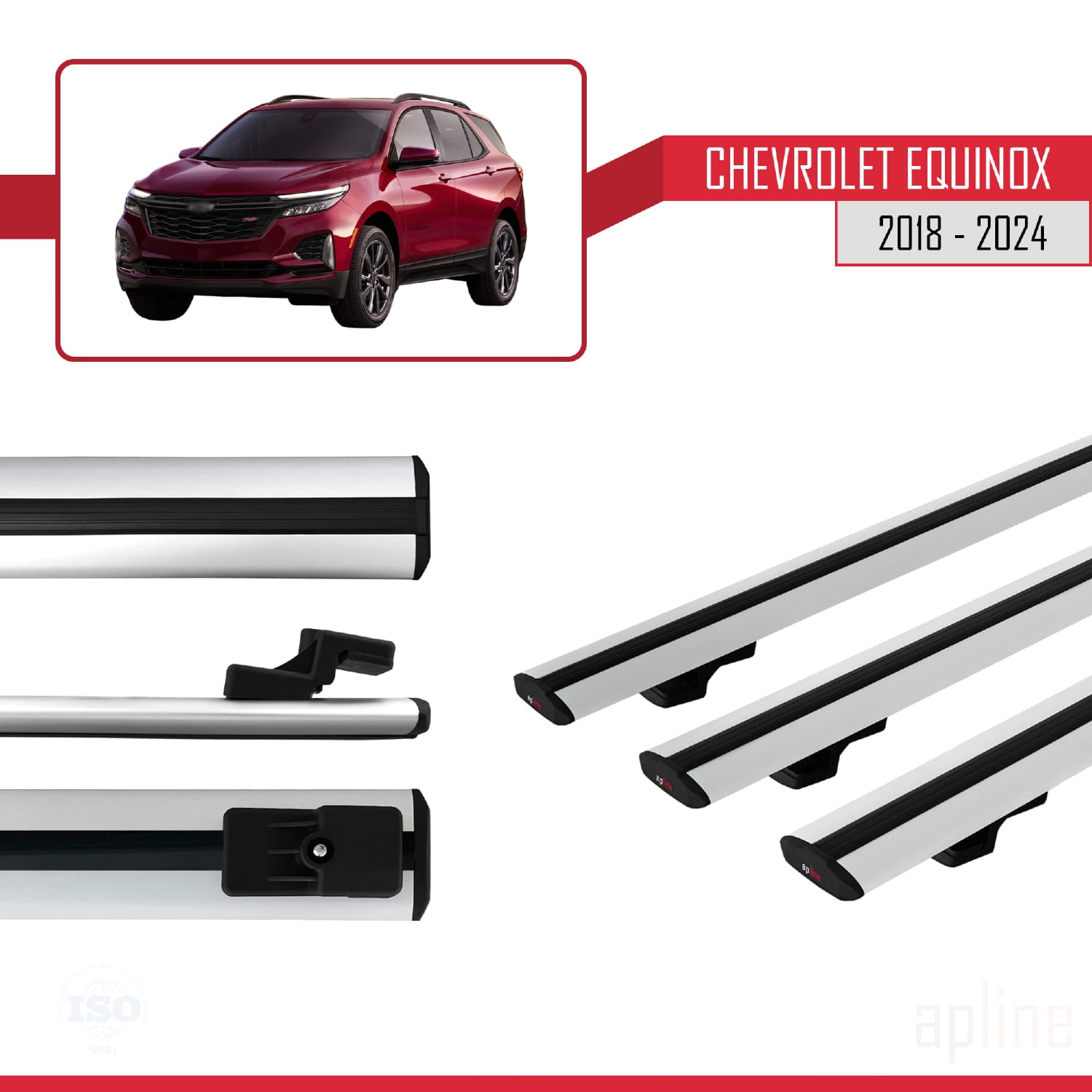 Compatibile con Chevrolet Equinox 2018-2024 modello BASIC Barre portatutto per auto Portapacchi in alluminio grigio 3 barre
