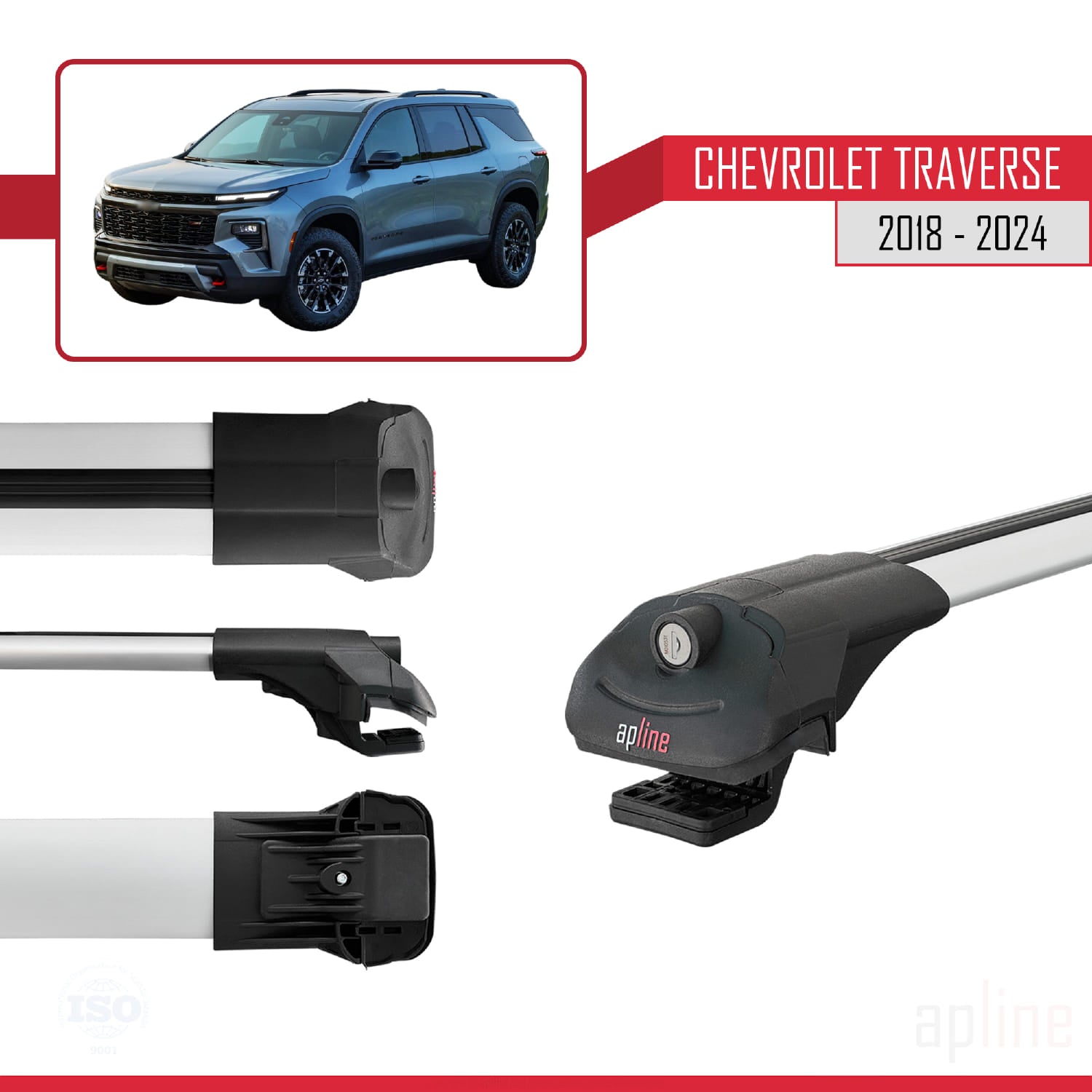 Compatibile con Chevrolet Traverse 2018-2024 ACE-1 Barre portatutto per auto Portapacchi in alluminio grigio 2 barre