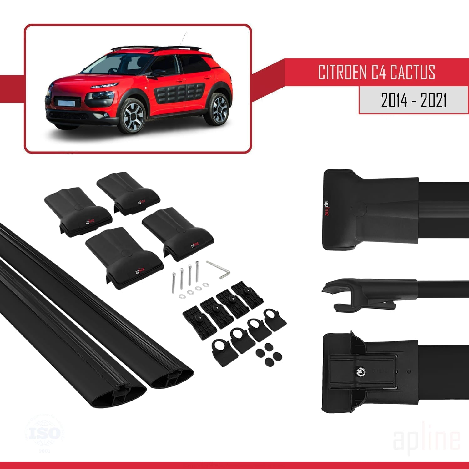 Compatibile con Citroen C4 Cactus 2014-2021 modello FLY Barre portatutto per auto Portapacchi in alluminio nero 2 barre