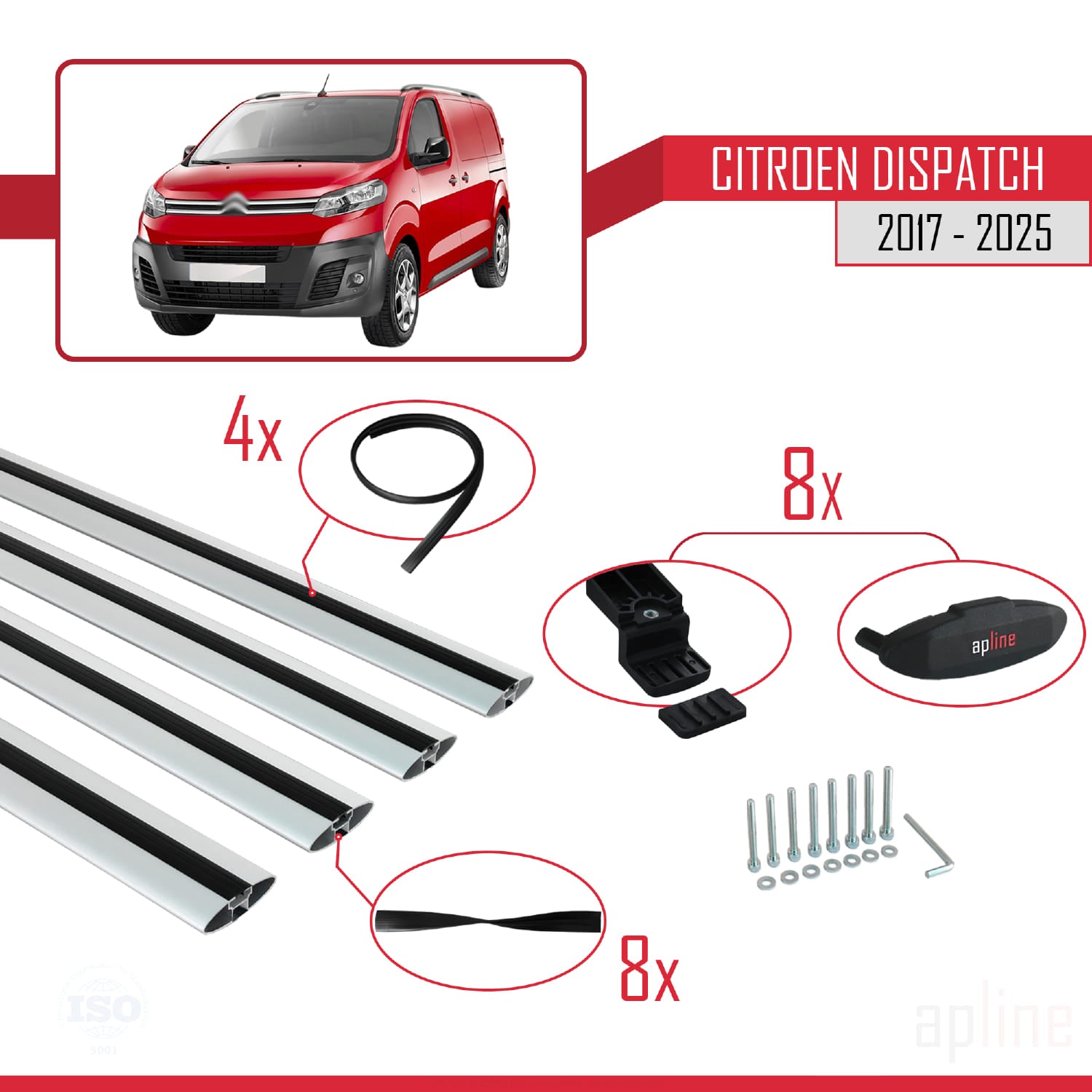 Compatibile con Citroen Dispatch (K0) 2017-2025 modello BASIC Barre portatutto per auto Portapacchi in alluminio grigio 4 barre
