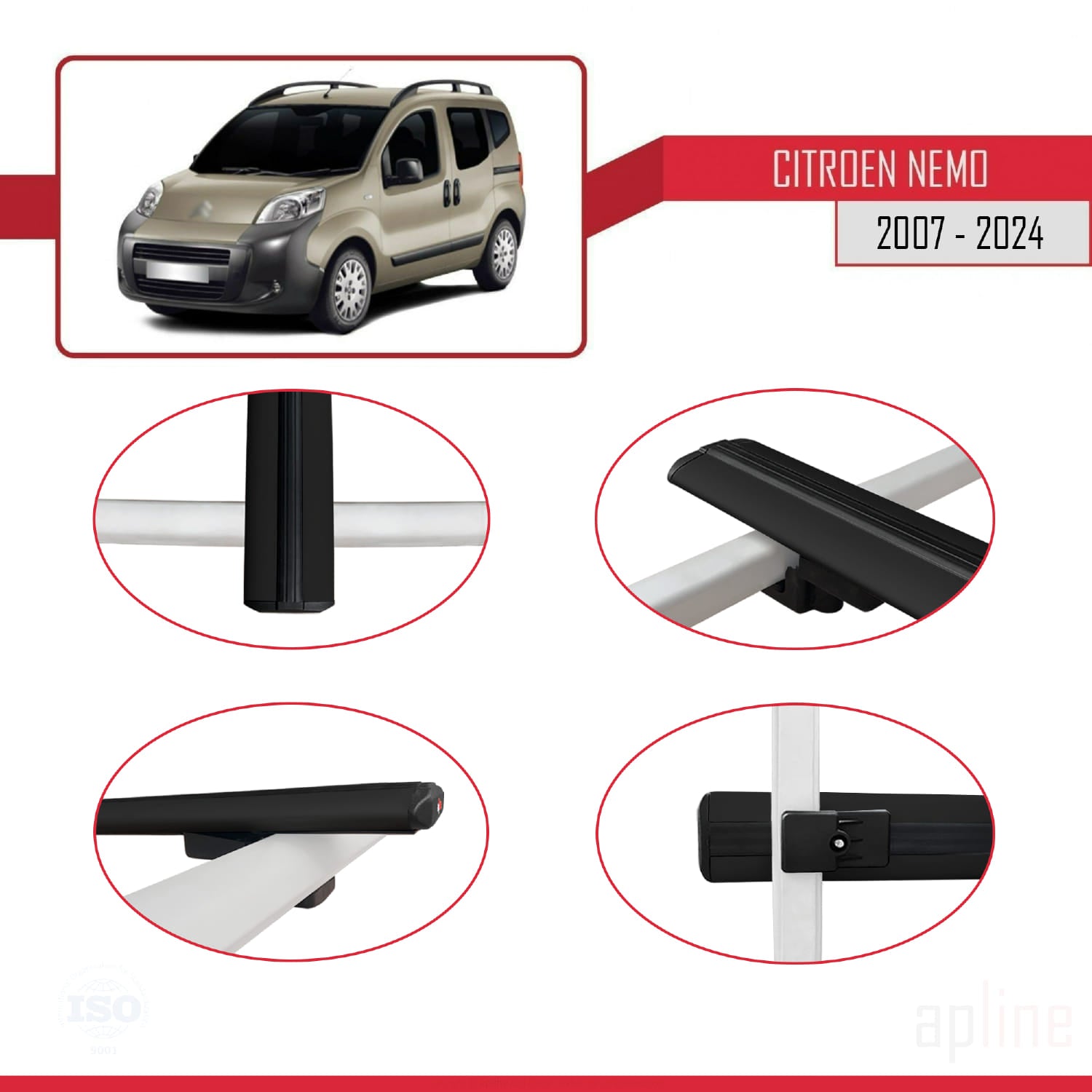 Compatibile con Citroen Nemo 3 (225) 2007-2024 modello BASIC Barre portatutto per auto Portapacchi in alluminio nero 2 barre