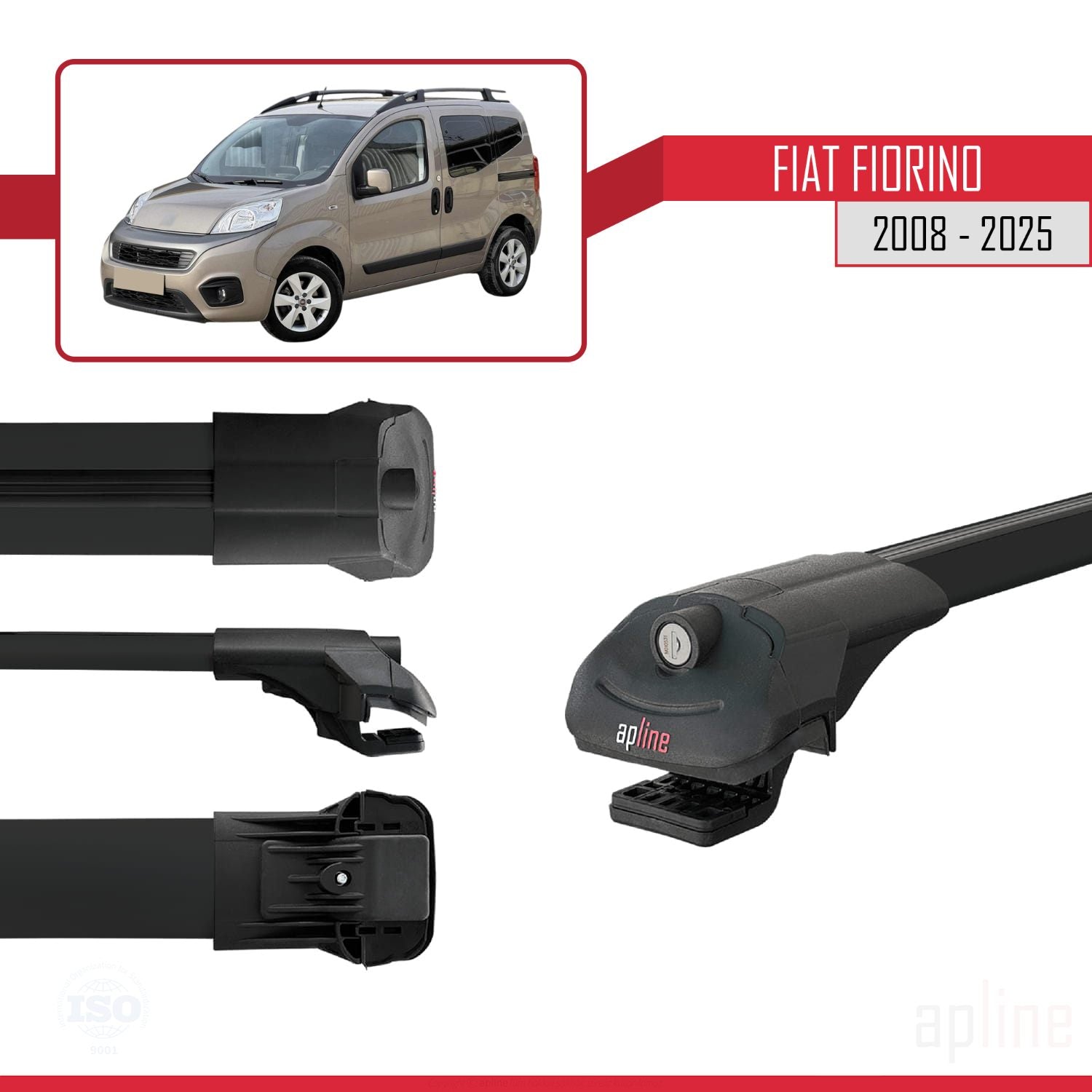 Compatible avec Fiat Fiorino (Modèle Tubulaire) 2008-2025 ACE-1 Barres de Toit Railing Porte-Bagages de Voiture Noir Aluminium 2 Barres