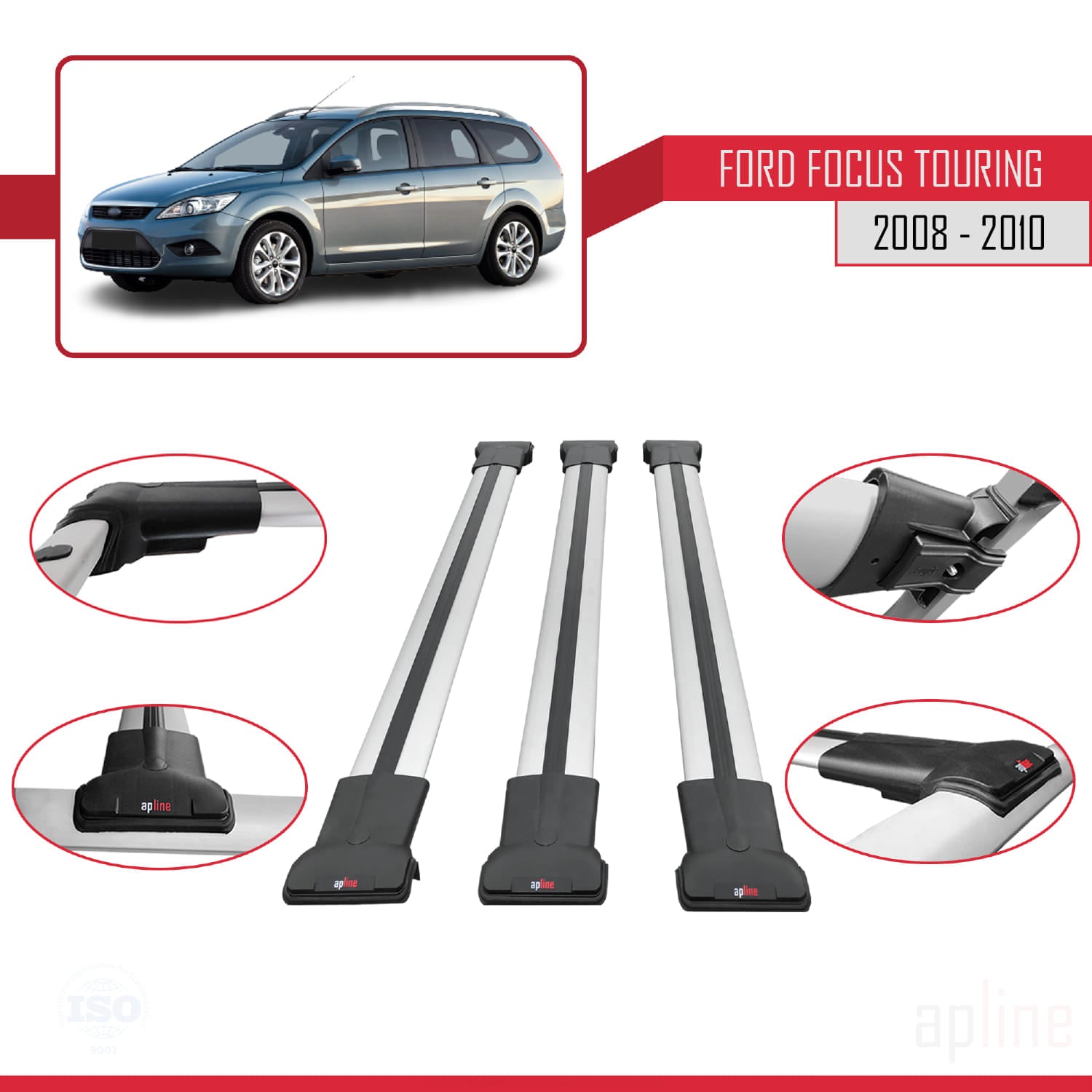 Compatibile con Ford Focus 2 (C307) Turnier 2008-2010 modello FLY Barre portatutto per auto Portapacchi in alluminio grigio 3 barre