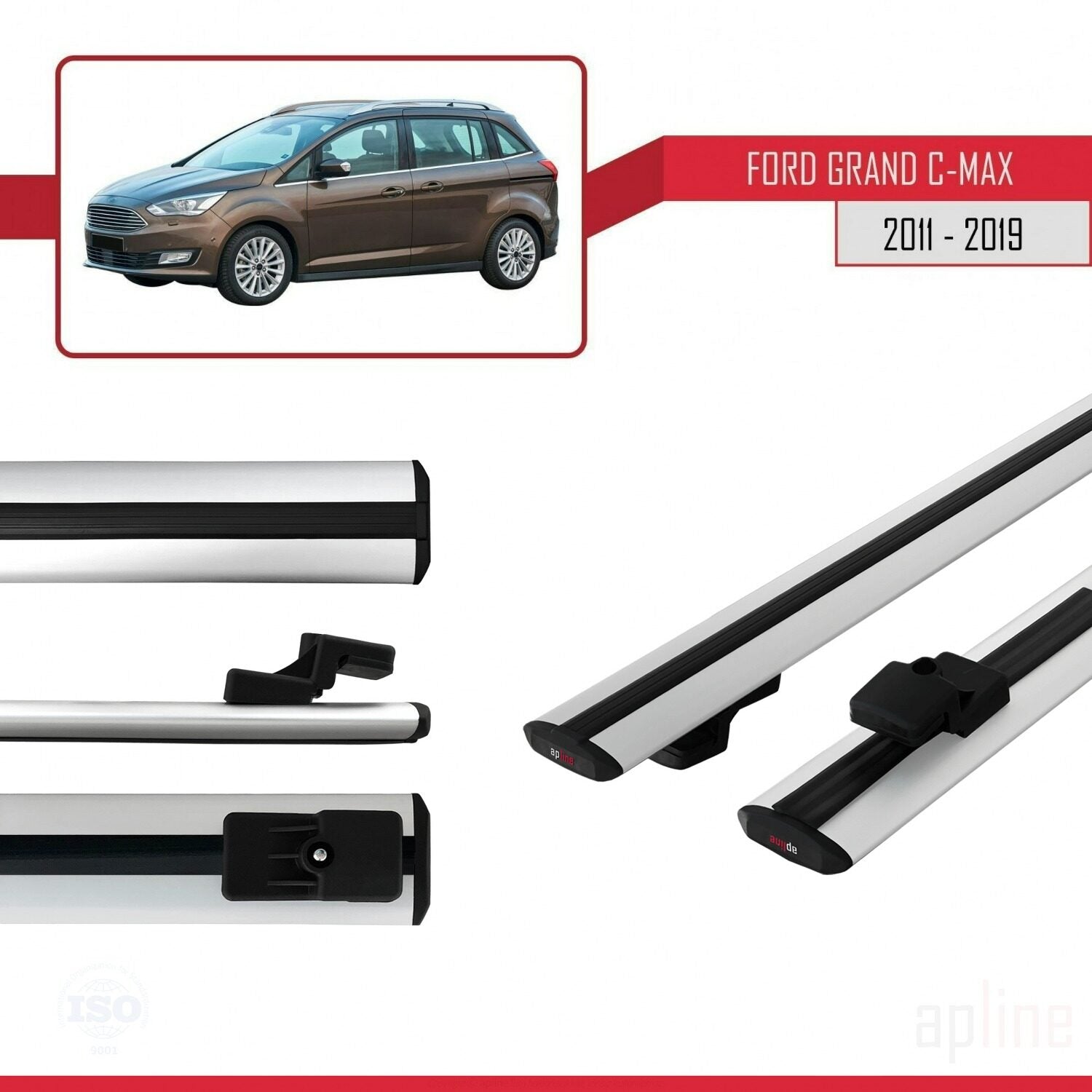 Compatibile con Ford Grand C-Max (C344) 2011-2019 modello BASIC Barre portatutto per auto Portapacchi in alluminio grigio 2 barre