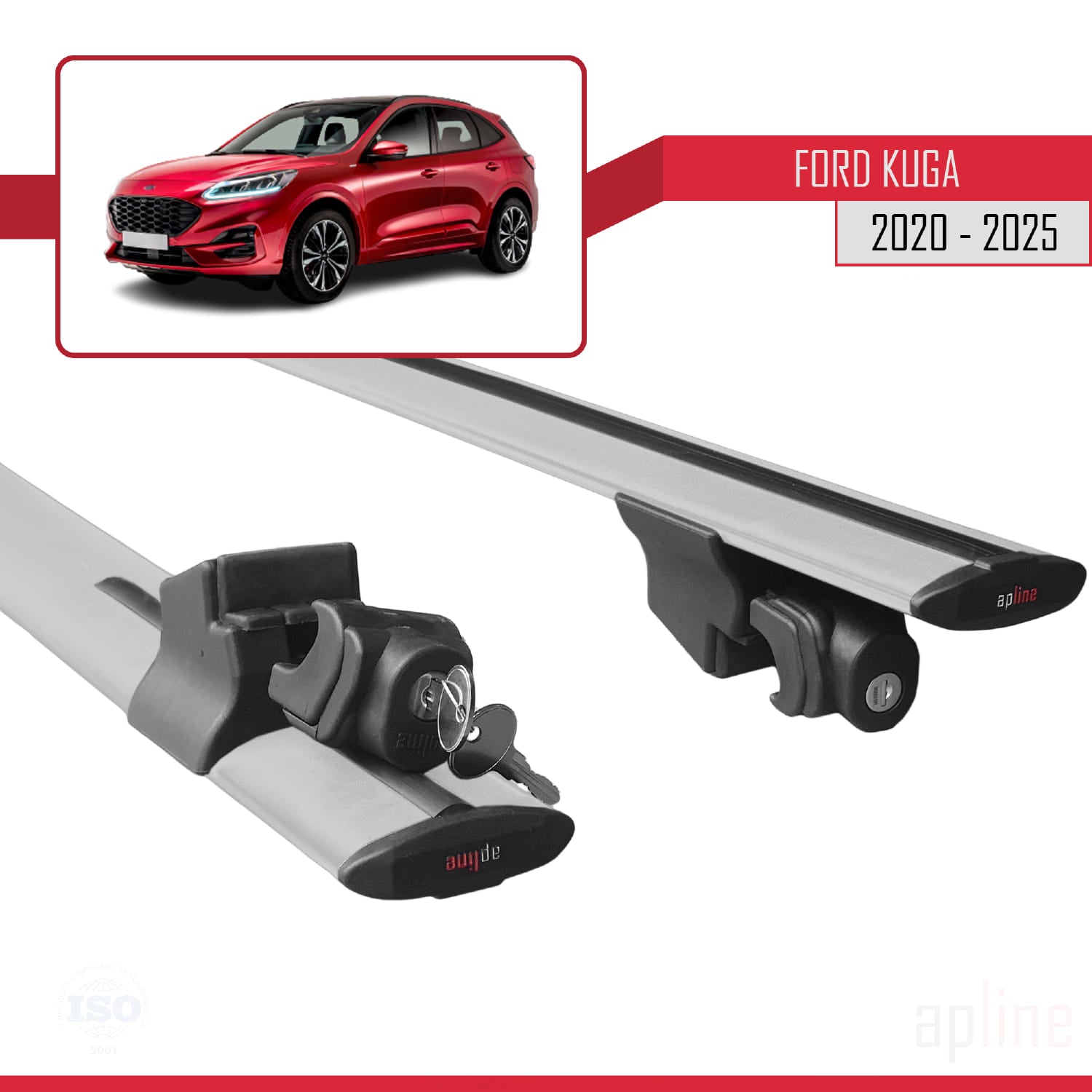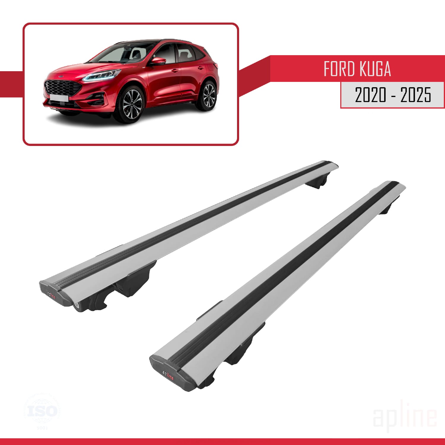 Compatibile con Ford Kuga 3 (CX482) 2020-2025 Modello HOOK Barre portatutto per auto Portapacchi in alluminio grigio 2 barre