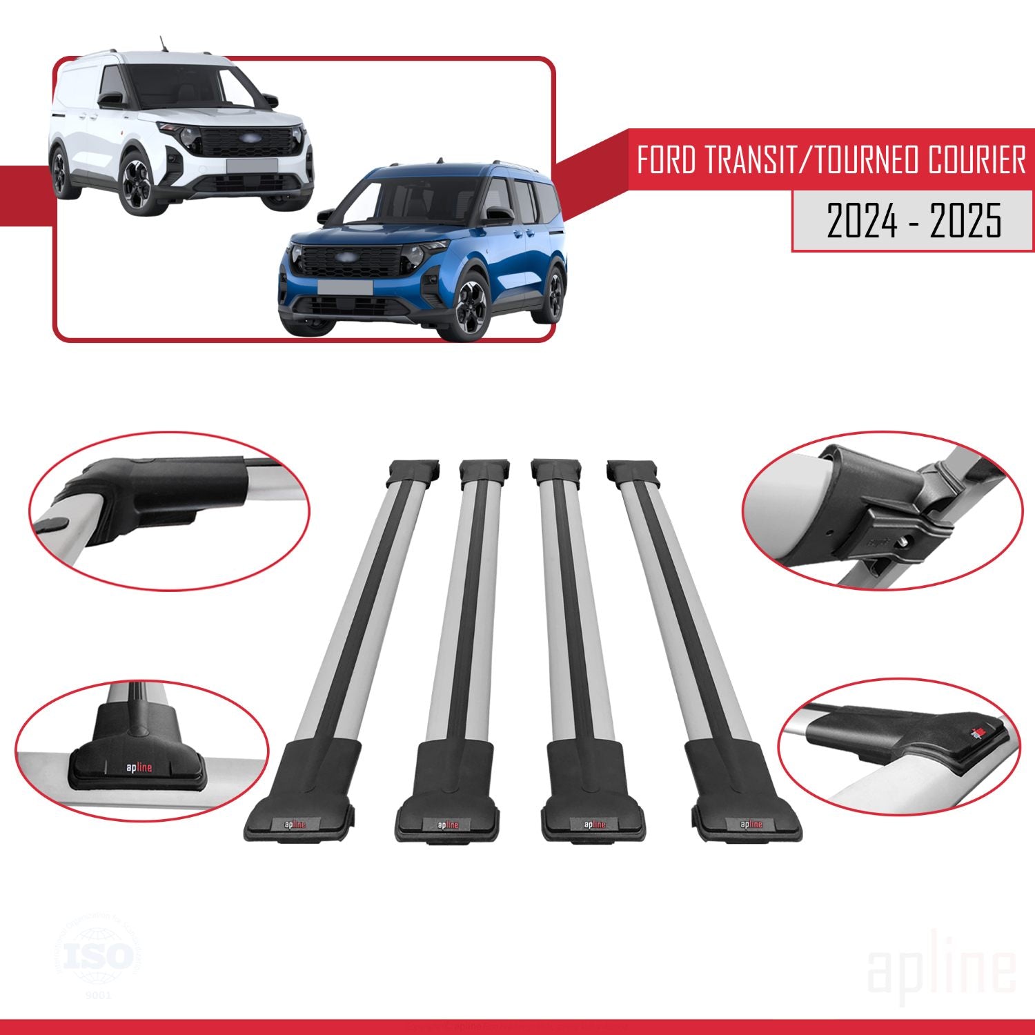 Compatibile con Ford Transit/Tourneo Courier 2024-2025 modello FLY Barre portatutto per auto Portapacchi in alluminio grigio 4 barre