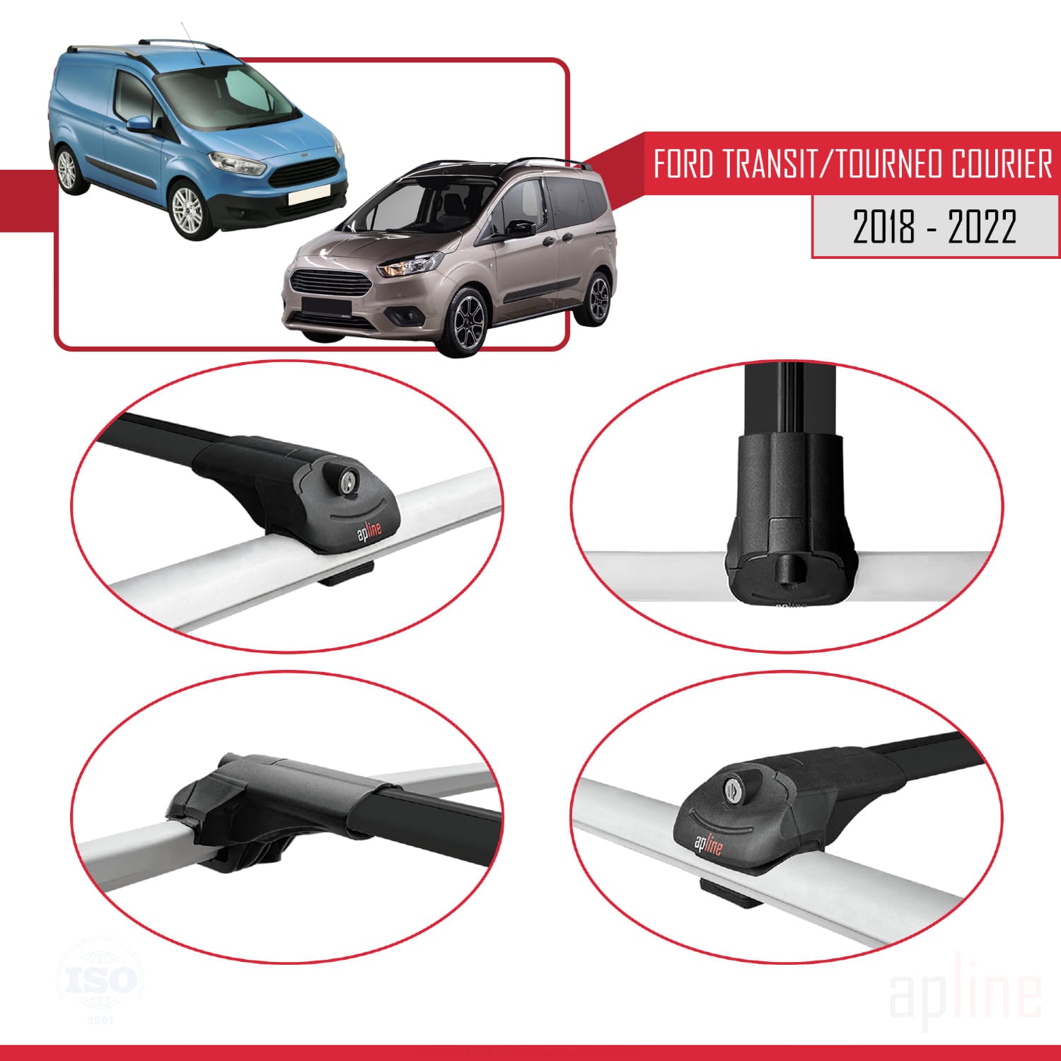 Compatibile con Ford Transit/Tourneo Courier Post-Facelift 2018-2022 ACE-1 Barre portatutto per auto Portapacchi in alluminio nero 4 barre