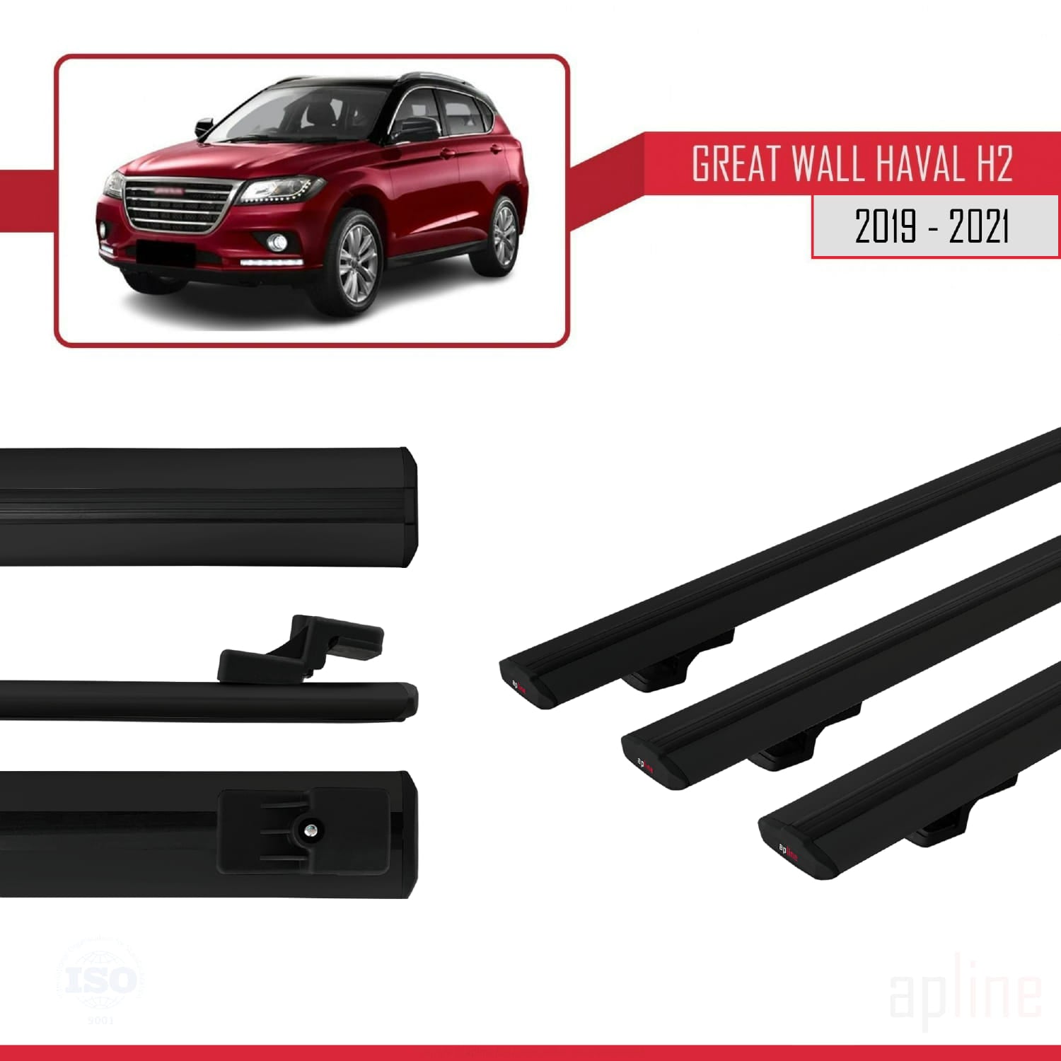 Compatibile con Great Wall Haval H2 2019-2021 modello BASIC Barre portatutto per auto Portapacchi in alluminio nero 3 barre