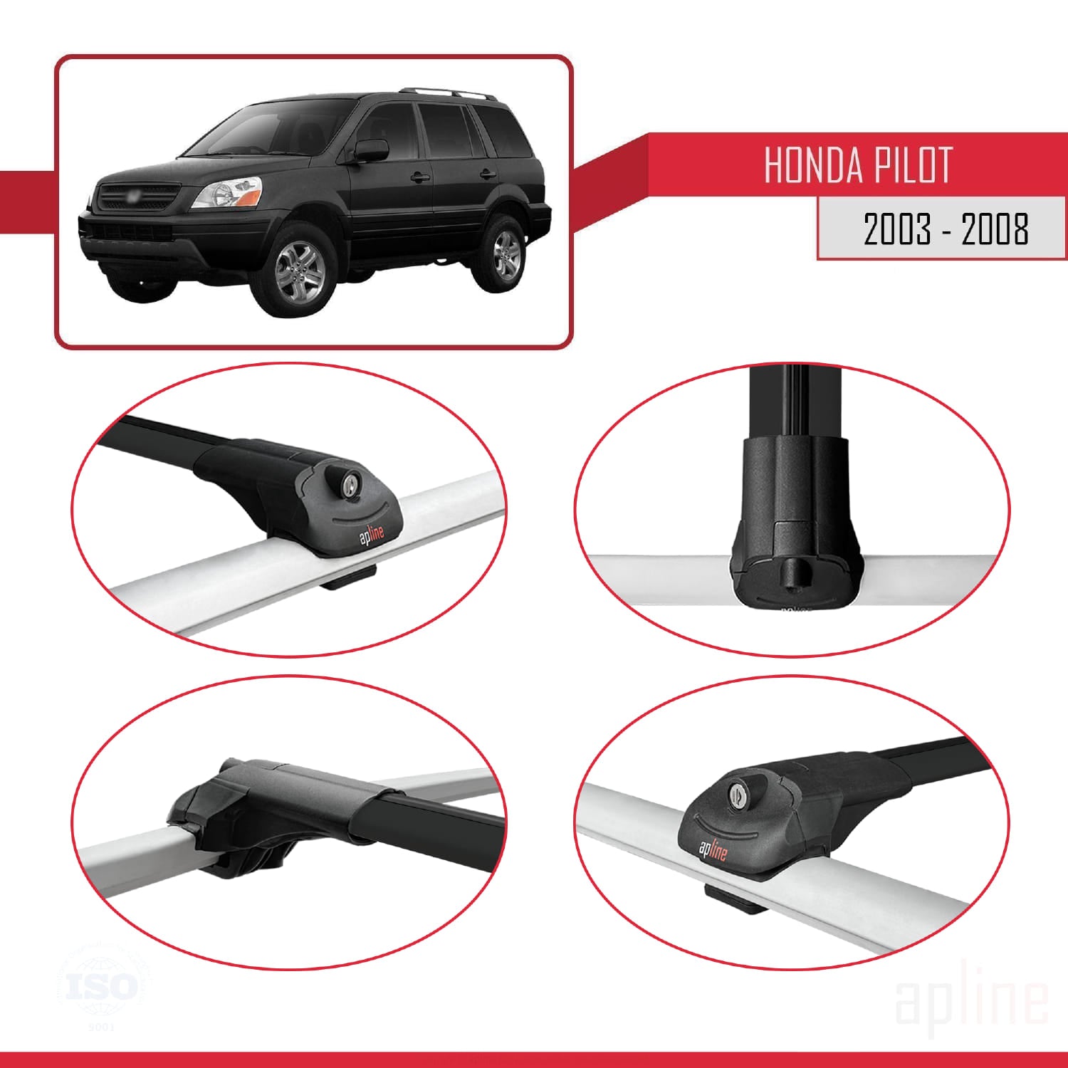 Compatibile con Honda Pilot 2003-2008 ACE-1 Barre portatutto per auto Portapacchi in alluminio nero 3 barre